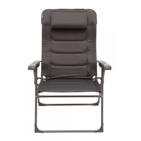 Der Hampton Grande DLX Chair Campingstuhl der Marke Vango zielt darauf ab, seinen Benutzern hohen Komfort zu bieten. Dies wird durch eine ergonomisch gepolsterte Rückenlehne, Kissen und Sitz erreicht. Durch die sieben Einstellmöglichkeiten von aufrecht bis liegend findet jeder seine ideale Ruhe-, Lese- oder Schlafposition. Auch verschiebbare Armlehnen sind eine Selbstverständlichkeit. Die Struktur besteht aus Stahl, die Rückenlehne und der Sitzbezug sind aus strapazierfähigem DuoWave-Gewebe gefertigt.