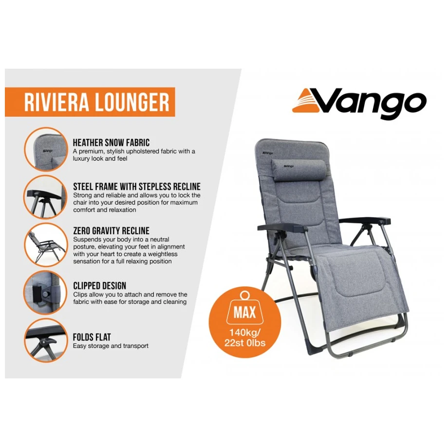 DerEntspannende Liegestuhl Campingstuhl Vango Riviera Lounger mit Schaukelmöglichkeit ist der perfekte Ort zum Entspannen nach einem anstrengenden Tag. Der Stuhl besteht aus einem Stahlrahmenund verfügt über die Funktion Lock , mit der Sie die Position des Stuhls nach Bedarf arretieren können.