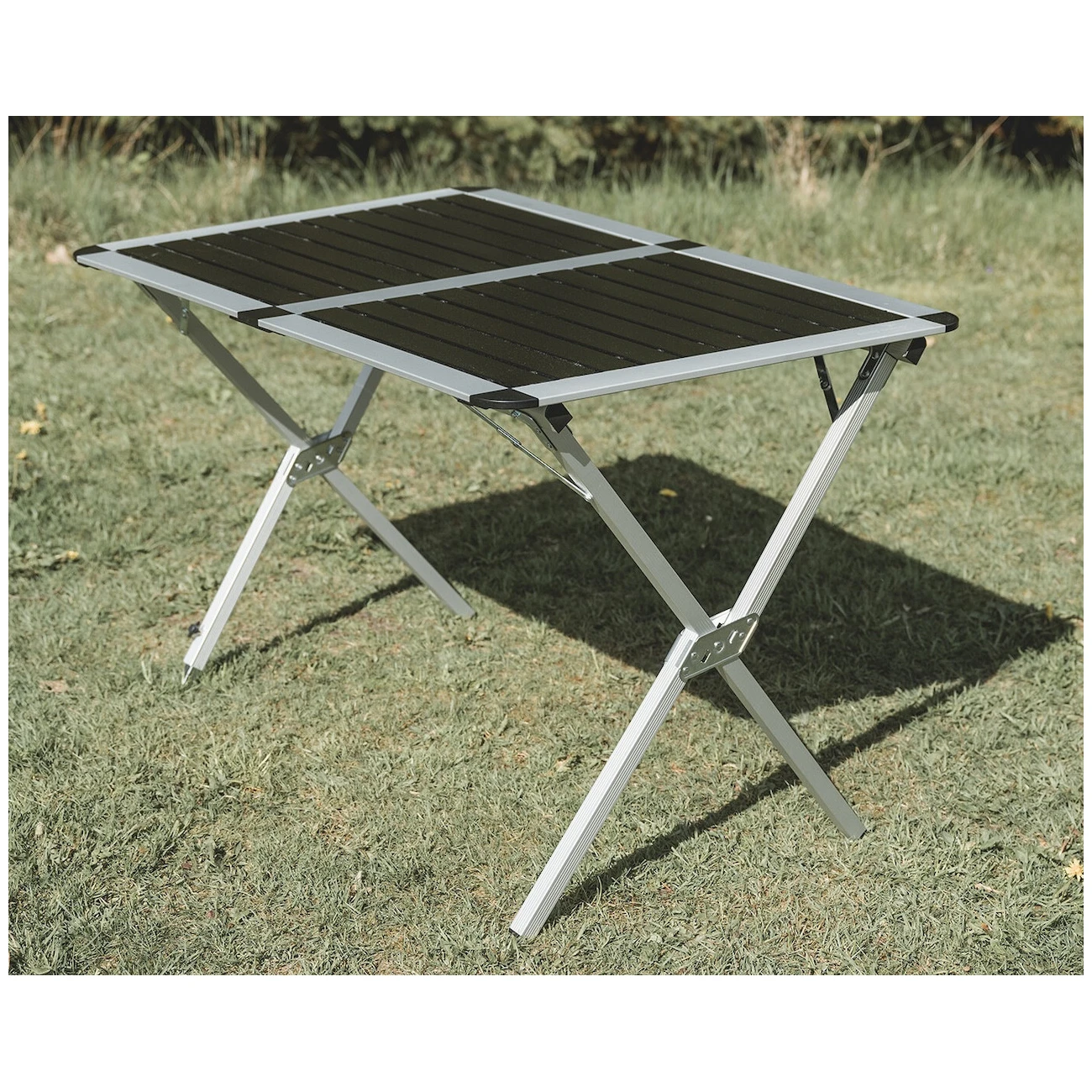 Mit einer Tischplattengröße von 70x110 cm ist er ideal für ein Essen für vier Personen. Durch höhenverstellbare Füße können Sie Unebenheiten im Gelände problemlos ausgleichen. Die maximale Höhe beträgt 70 cm.
