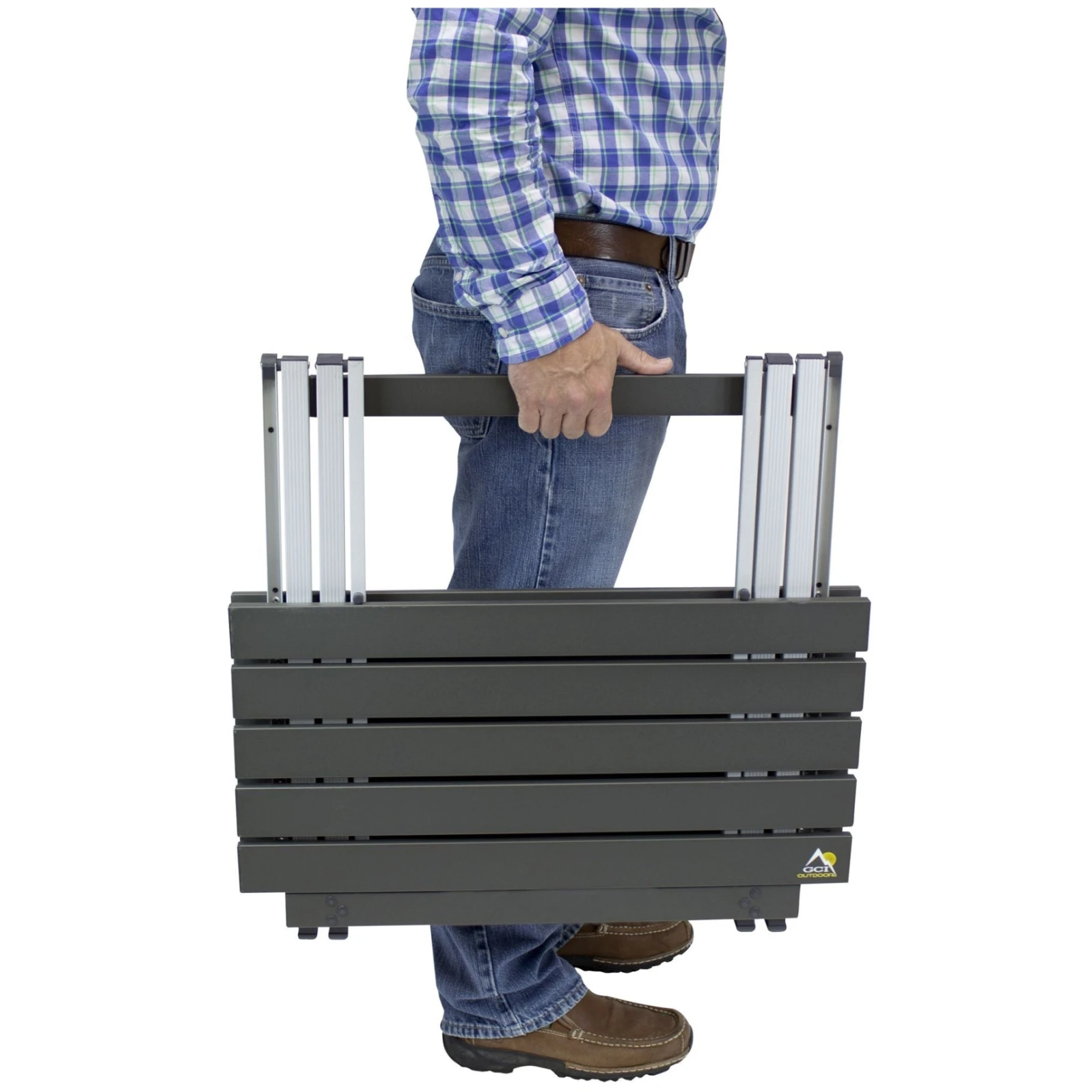 Der GCI Compact Camp Table 25™ ist der ideale Begleiter für all Ihre Outdoor-Aktivitäten, egal ob Camping, Picknick oder Tailgating. Dank der patentierten Squeeze Telescoping Technology™ lässt sich der Tisch einfach und schnell auf- und abbauen, was eine komfortable Nutzung und Platzersparnis beim Transport gewährleistet. Die robuste Aluminiumplatte des Tisches ist hitzebeständig, sodass Sie problemlos einen Kocher oder heiße Getränke darauf abstellen können. Die Teleskopbeine ermöglichen einen vollwertigen Tisch für bis zu vier Personen, während der Tisch im zusammengeklappten Zustand kompakt und leicht zu verstauen ist.