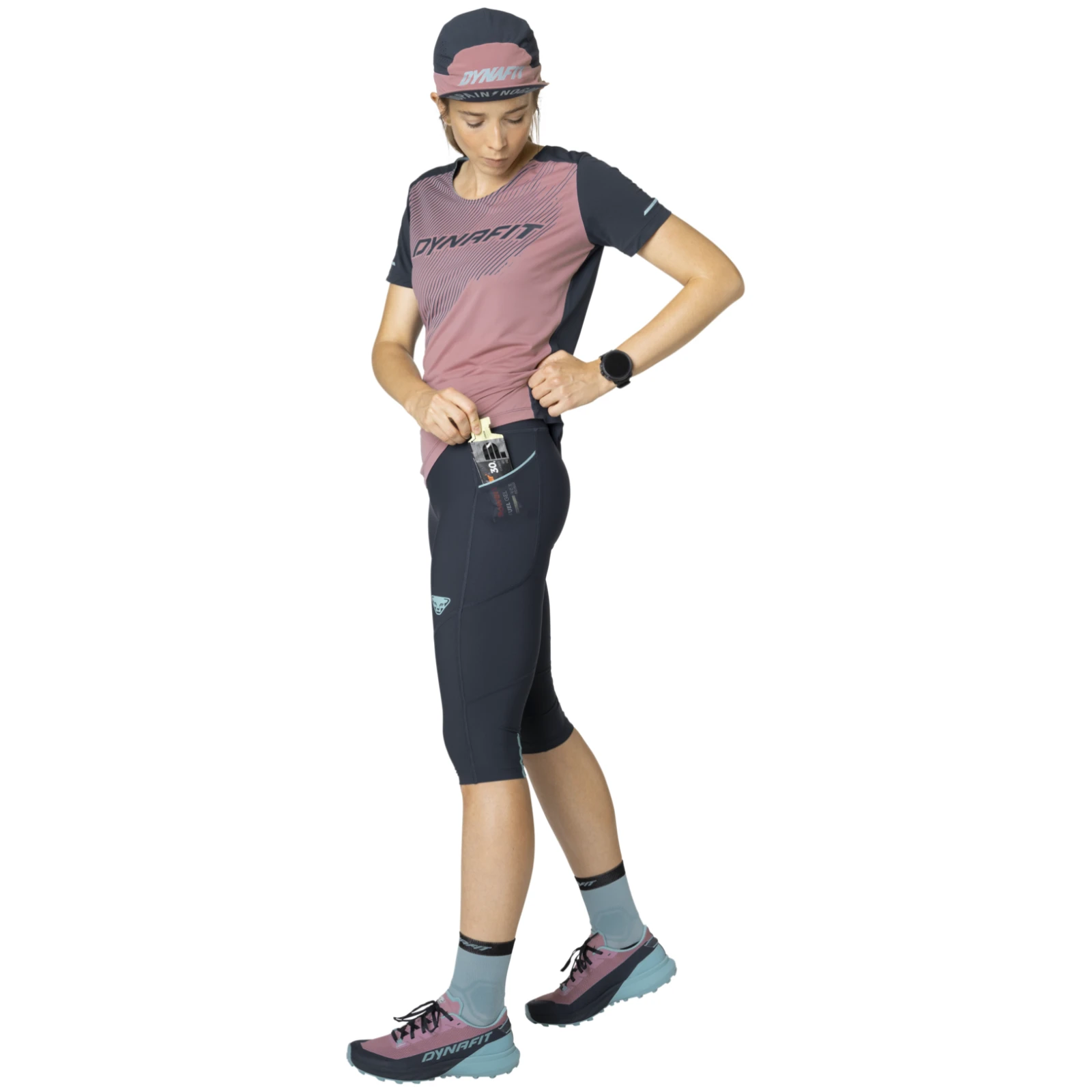 Damen Laufleggings Dynafit Alpine 3/4 Tights W bieten hervorragenden Schutz in der Übergangszeit oder bei morgendlicher Kühle. Ihr hochelastisches Material mit 4-Wege-Stretch passt sich optimal den Bewegungen an und ist atmungsaktiv, wodurch auch bei hochintensivem Laufen eine optimale Regulierung der Körpertemperatur gewährleistet wird.