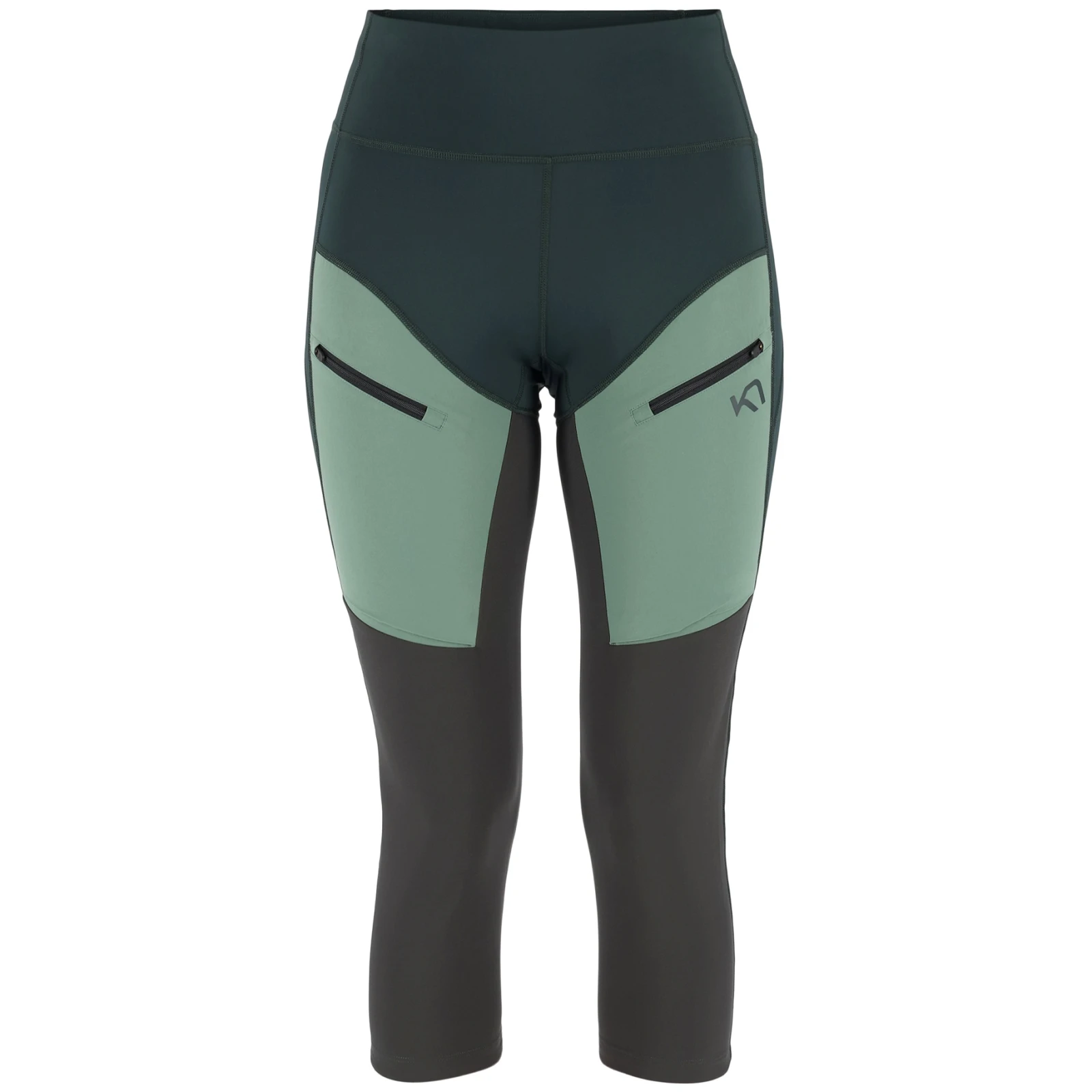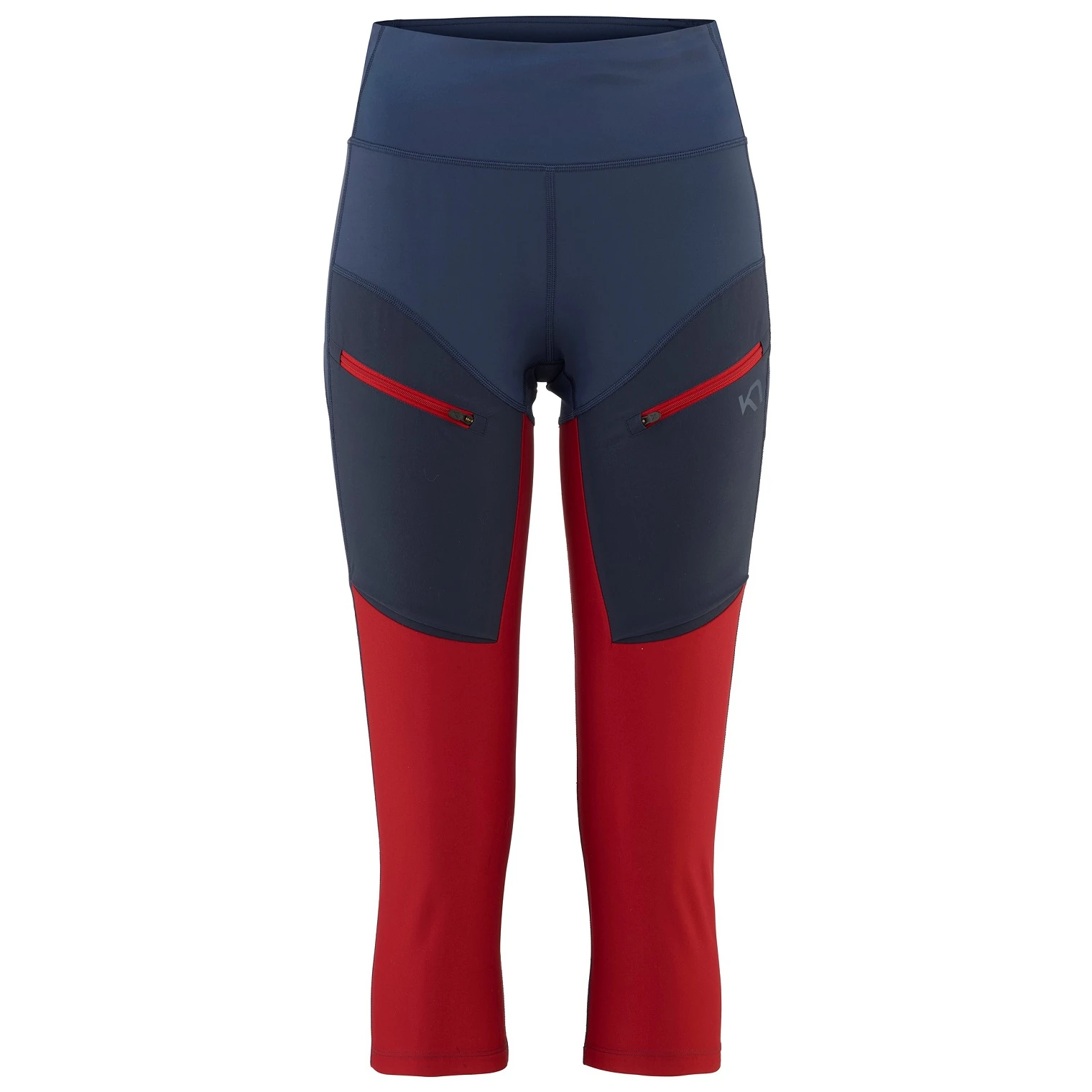 Damen 3/4-Leggings Ane Hiking Capri von Kari Traa überzeugen durch ihr schnelltrocknendes Material, das Feuchtigkeit vom Körper wegleitet und Sonnenschutz (40+ UPF - Ultraviolet Protection Factor). Dank des erhöhten, breiten Hosenbunds ist auch bei anstrengenderen Outdoor-Aktivitäten ein angenehmer Tragekomfort gewährleistet. Flache Nähte verhindern Hautreizungen. 4-Wege-Stretchmaterial und Zwickel im Schritt ermöglichen Bewegungsfreiheit.