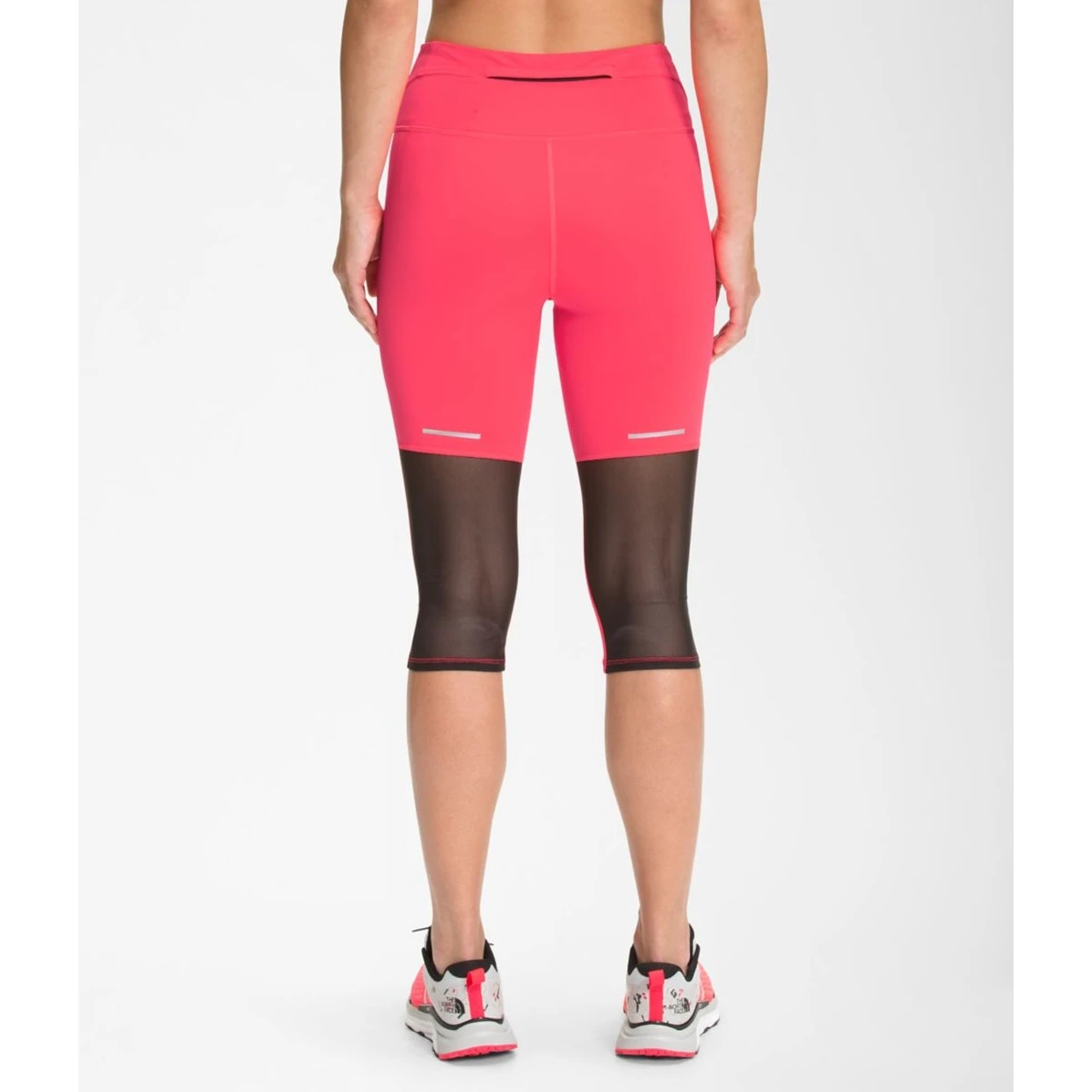 3/4-Leggings für Damen The North Face Movmynt Capri leitet Schweiß hervorragend ab, ist dehnbar, bequem und trocknet schnell. Das reflektierende Logo auf dem linken Oberschenkel erhöht die Sichtbarkeit beim Training in der Nacht oder am frühen Morgen. Auch ein größeres Telefon findet bequem Platz in der Vordertasche. Eine großartige Wahl für Fitness und Laufen.