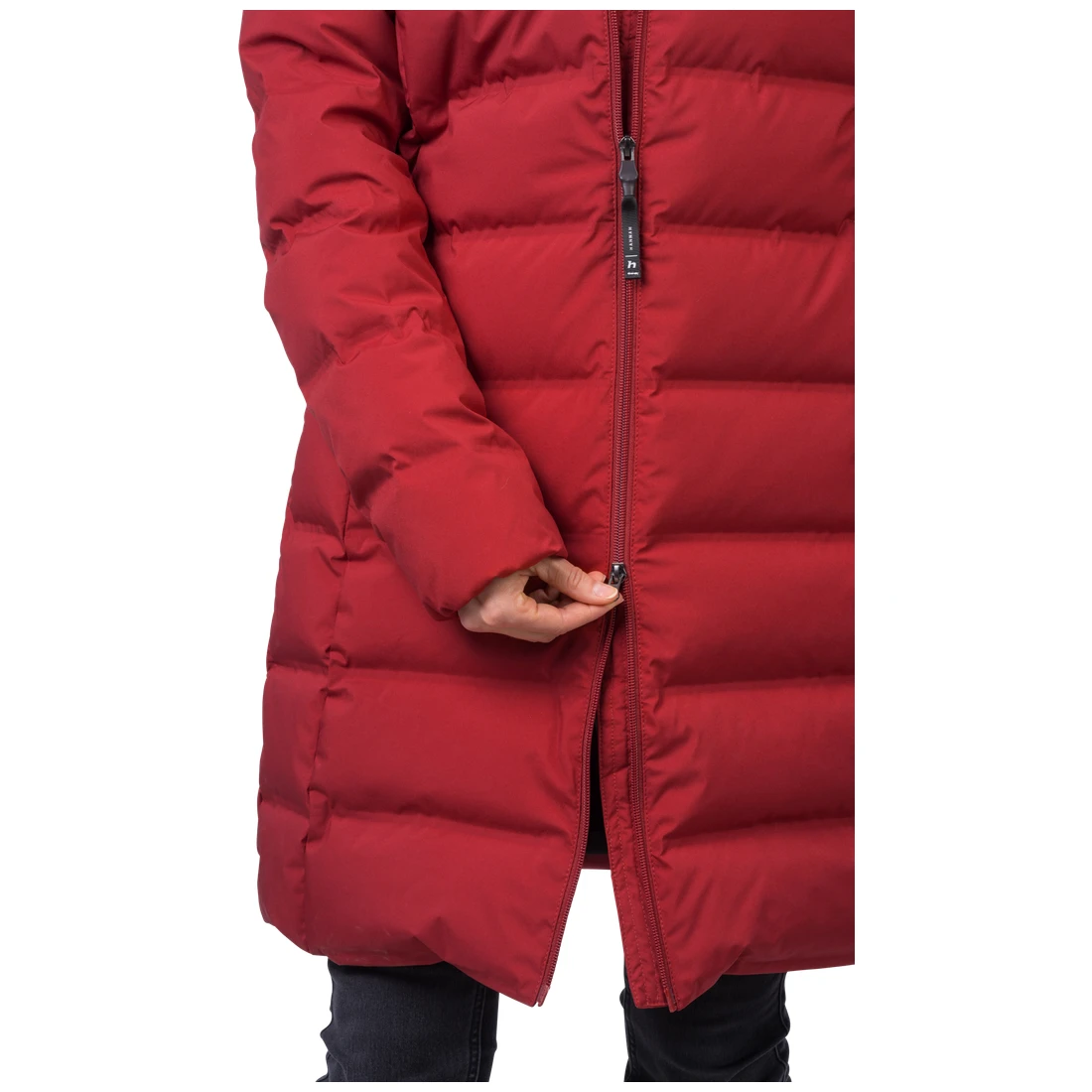 Der Damen Steppmantel Gaia der Marke Hannah hat einen modernen Oversized-Schnitt. Es ist mit Entenfedern kammergefüllt, wobei die Welded DownTec-Technologie mit der Responsible Down Standard-Zertifizierungzum Einsatz kommt. Bei diesem Produkt wurden keine Nadeln, sondern Schweißtechnologieverwendet. Der Mantel verfügt über verschweißte Bodenplatten anstelle von Nähten, die Wärmeverlust verhindern und die Daunen vor Feuchtigkeit schützen. Dadurch wird die Haltbarkeit und Qualität des verwendeten Materials deutlich erhöht . Dank der wasserabweisenden WR-Behandlungkönnen Sie etwas Regen und Schnee problemlos vertragen. Der Gaia-Mantel hat eine verstellbare Kapuze. Auch die praktische Innentasche mit Reißverschluss wird Sie begeistern. Der Hauptreißverschluss ist zweiseitig, die Haupttaschen sind mit Reißverschlüssen versehen. Die Ärmel und der untere Rand des Mantels sind mit Gummizug versehen.