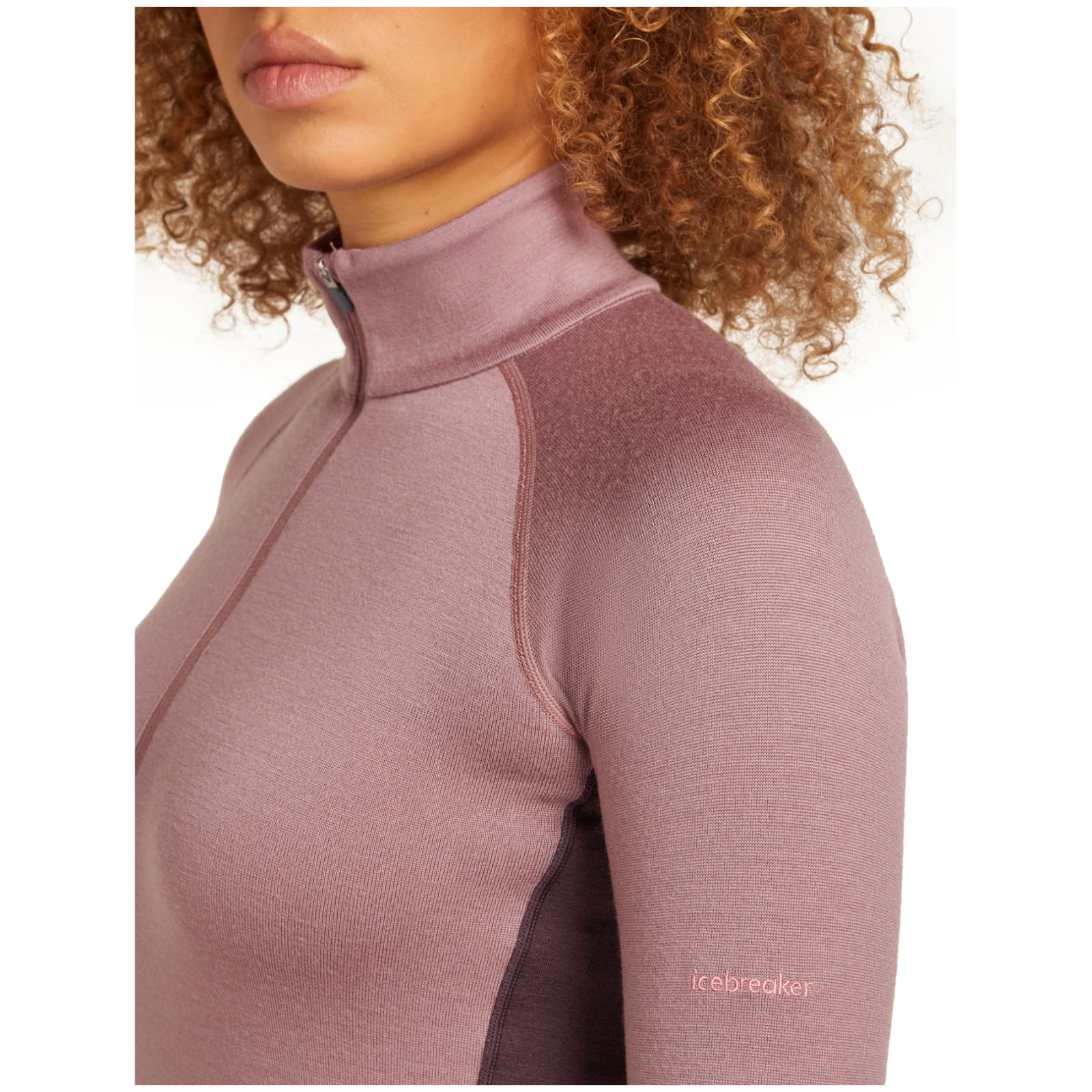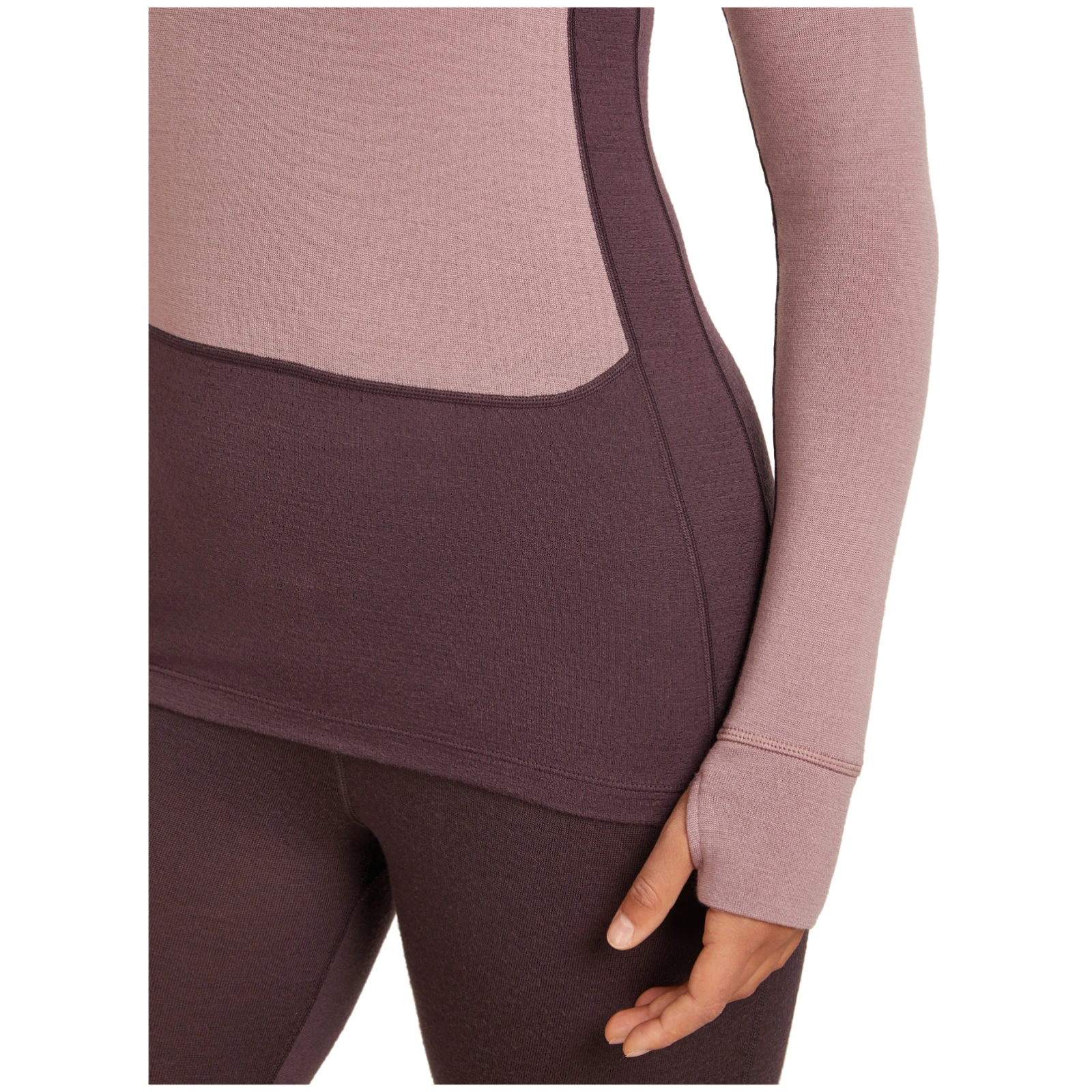 Damen Funktions-Langarm-T-Shirt mit halbem Reißverschluss Icebreaker ZoneKnit™ 260 LS Crewe besteht aus 100 % reiner und natürlicher Merinowolle in mittlerer Stärke. Dies ist eine Basisschicht, die Ihnen hilft, Ihre Temperatur bei hochintensiven Aktivitäten zu regulieren. Sie werden sich über die Daumenlöcher freuen, die die Ärmel an Ort und Stelle und Ihre Hände warm halten.