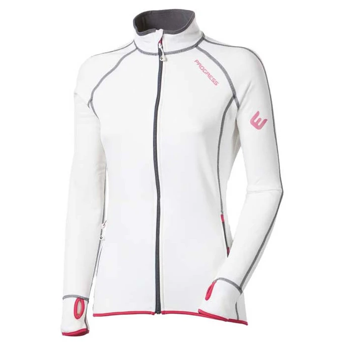 Damen Funktionssweatshirt Progress Der Print mit Stehkragen und Reißverschluss bis zum Hals hält dich auch an kälteren Tagen warm. Das Sweatshirt besteht aus technischem TECNOSTRETCH Material des italienischen Herstellers PONTETORTO, das die Anforderungen an eine zweite Funktionsschicht ideal erfüllt. Dieses tolle Material ist außen leicht, glatt und strapazierfähig, innen angeraut und warm. Darüber hinaus ist es vollkommen funktionsfähig. Es garantiert eine hohe Elastizität, maximale Bewegungsfreiheit, hervorragende Wärmeisolierung und schnelle Trocknung. Flache Nähte sorgen für angenehmen Tragekomfort.