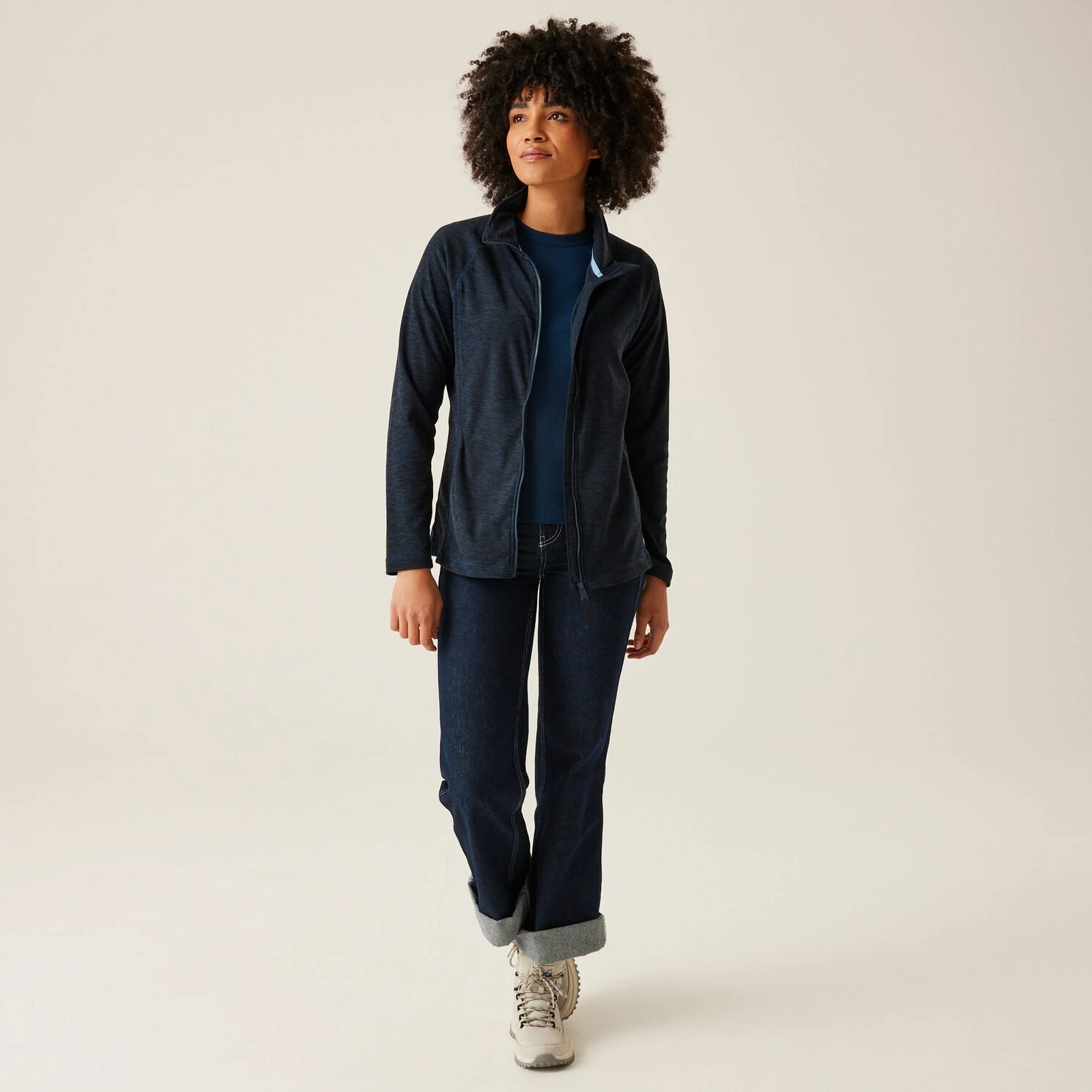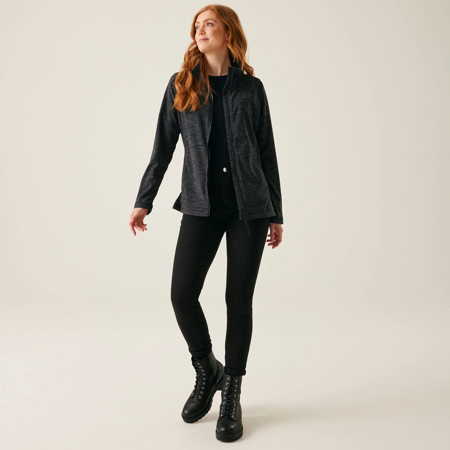 Das Damen-Funktionssweatshirt Mayse Full Zip der britischen Marke Regatta ist die ideale Wahl für aktive Frauen, die eine Kombination aus Komfort und modernem Design suchen. Das Sweatshirt besteht zu 100 % aus recyceltem Polyesterund besteht aus einem Stoff mit einem Marmordruck auf der Rückseite, der nicht nur für Stil sorgt, sondern auch praktische Eigenschaften bietet.