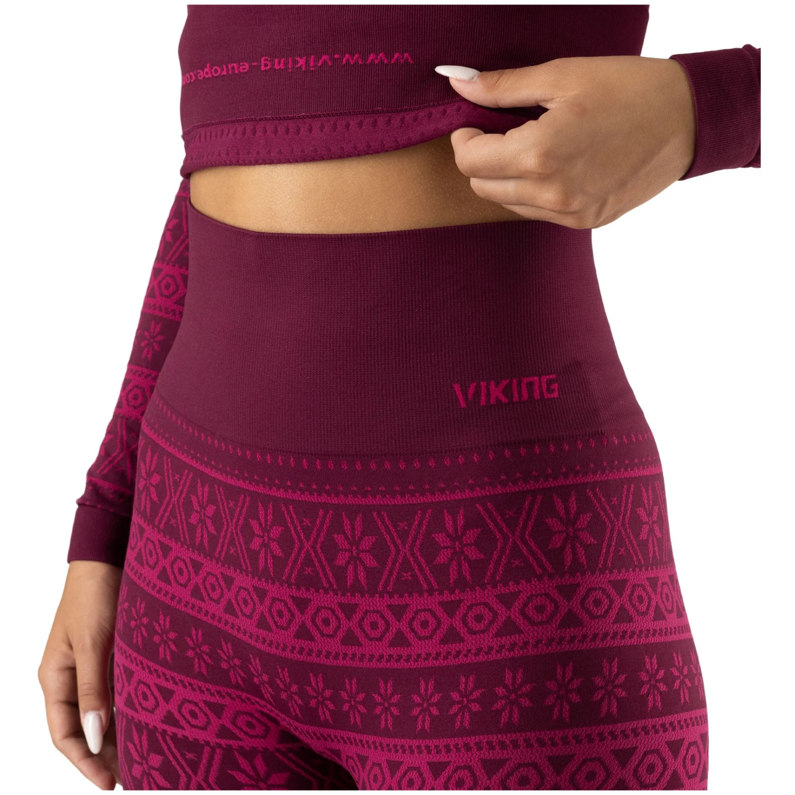 Viking Hera ist ein Set thermoaktiver Unterwäschefür Damen mit unverwechselbarem Winterdekor. Ein sehr schönes und elegantes Muster, das perfekt in die Winteratmosphäre passt. Diese Unterwäsche ist hoch atmungsaktiv und verfügt über hervorragende thermische Eigenschaften. Es ist warm, sehr weich und anschmiegsam, sodass es die Haut nicht reizt und angenehm zu tragen ist. Durch seine Elastizität schmiegt es sich optimal an den Körper an. Der hohe Bund der Hose verbessert zudem die Isolationseigenschaften. Viking Hera ist der Hit für lange Winterabende.