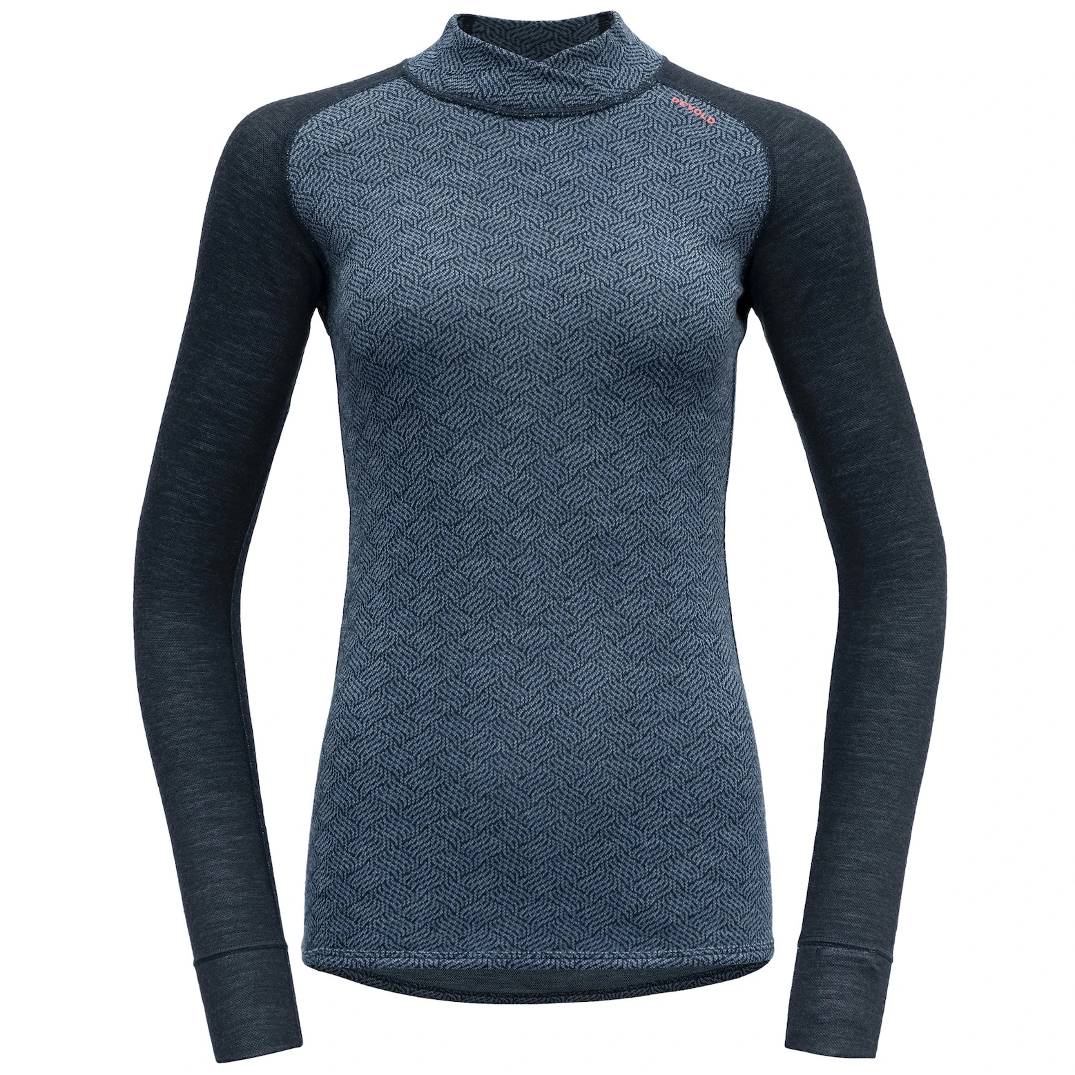 Das wendbare Damen-Funktions-T-Shirt Kvitegga Merino 230 Cross Neck der Marke Devold wurde speziell für kalte und raue Wetterbedingungenentwickelt, wenn die Trainingsintensität geringer und der Bedarf an Isolierung höher ist. Dies ist eines der wärmsten und robustesten Woll-T-Shirts des Herstellers Devold aus 100 % Merino Wolle. Die mikroskopisch kleinen Lufteinschlüsse der Wolle sorgen für eine optimale Wärmespeicherung. Das T-Shirt ist außerdem mit einem erhöhten Kragen, verlängertem Rückenteil, Flachnähten und Raglanärmeln ausgestattet, die für maximale Bewegungsfreiheit sorgen.