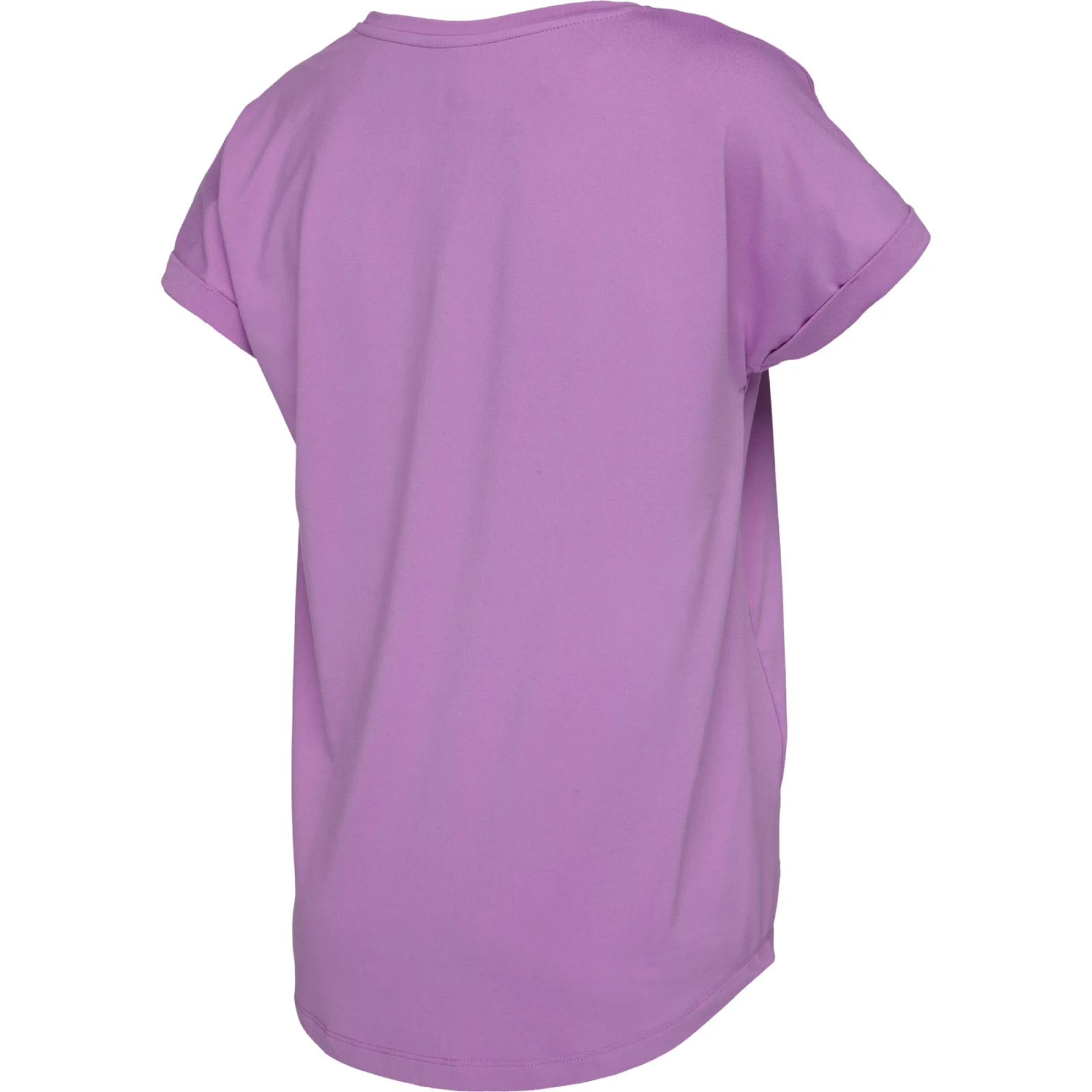 Das T-Shirt besteht aus recyceltem Material, genauer gesagt aus einer Kombination aus Polyester und Elasthan, was für Leichtigkeit, Atmungsaktivität und Strapazierfähigkeitsorgt. Dank der lockeren Passform mit U-Boot-Ausschnitt und nicht einschneidendem Saum passt das T-Shirt zu jeder Figur und bietet den ganzen Tag über einen angenehmen Tragekomfort.