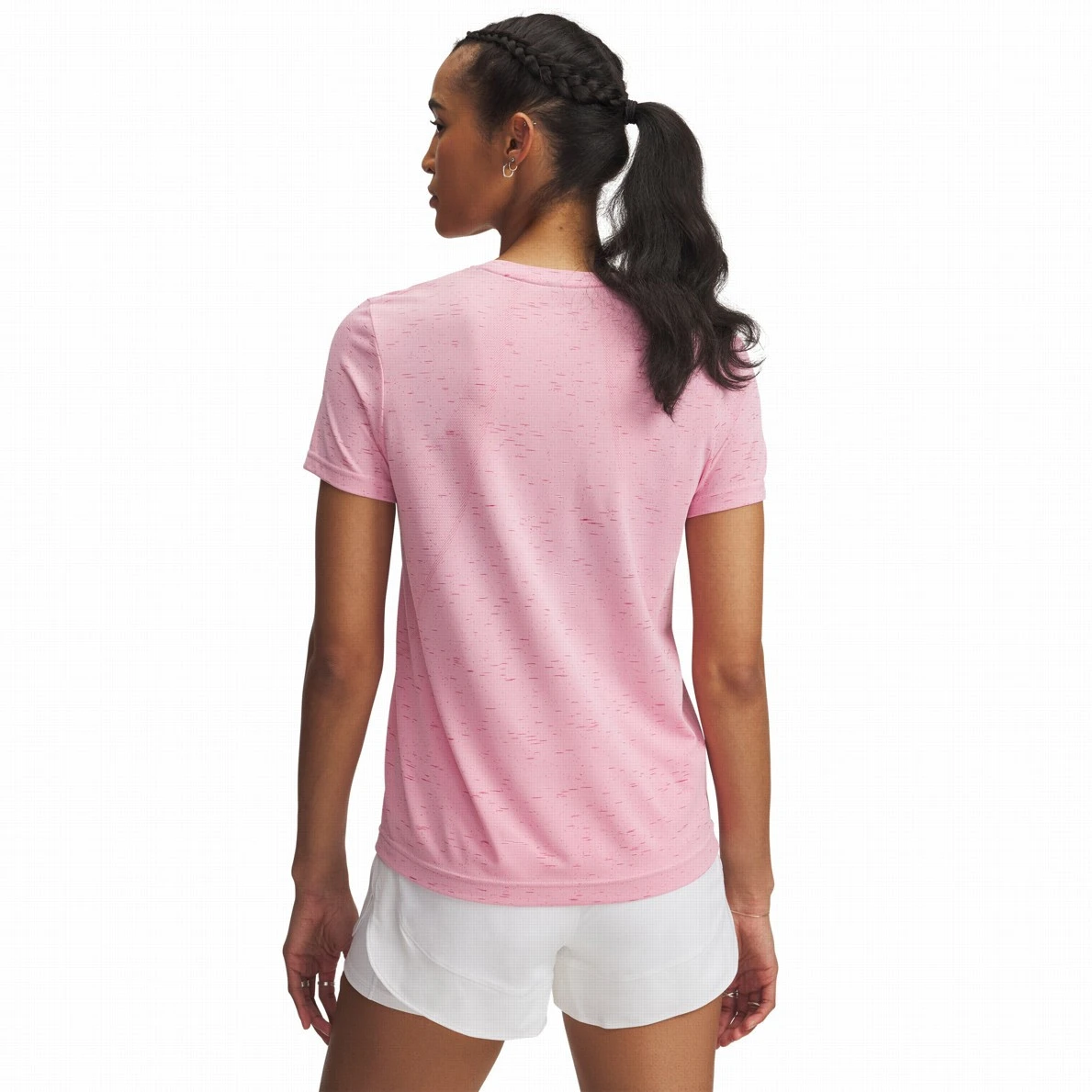 Das funktionelle Vanish Seamless Loose SS T-Shirt für Damen der Marke Under Armour kombiniert Komfort, Belüftung und 4-Wege-Stretch-Technologie für anspruchsvolle Workouts.