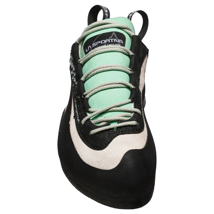 Der Schuh kommt mit Reibungsklettern zurecht, eignet sich aber auch gut für Felsvorsprünge oder Löcher. LaSportiva präsentiert es in einem modernisierten Design. Die Miura-Spitze ist von der Mirage abgeleitet und ist sehr aggressiv und äußerst effektiv bei kleinen Tritten, Taschen und Rissen.