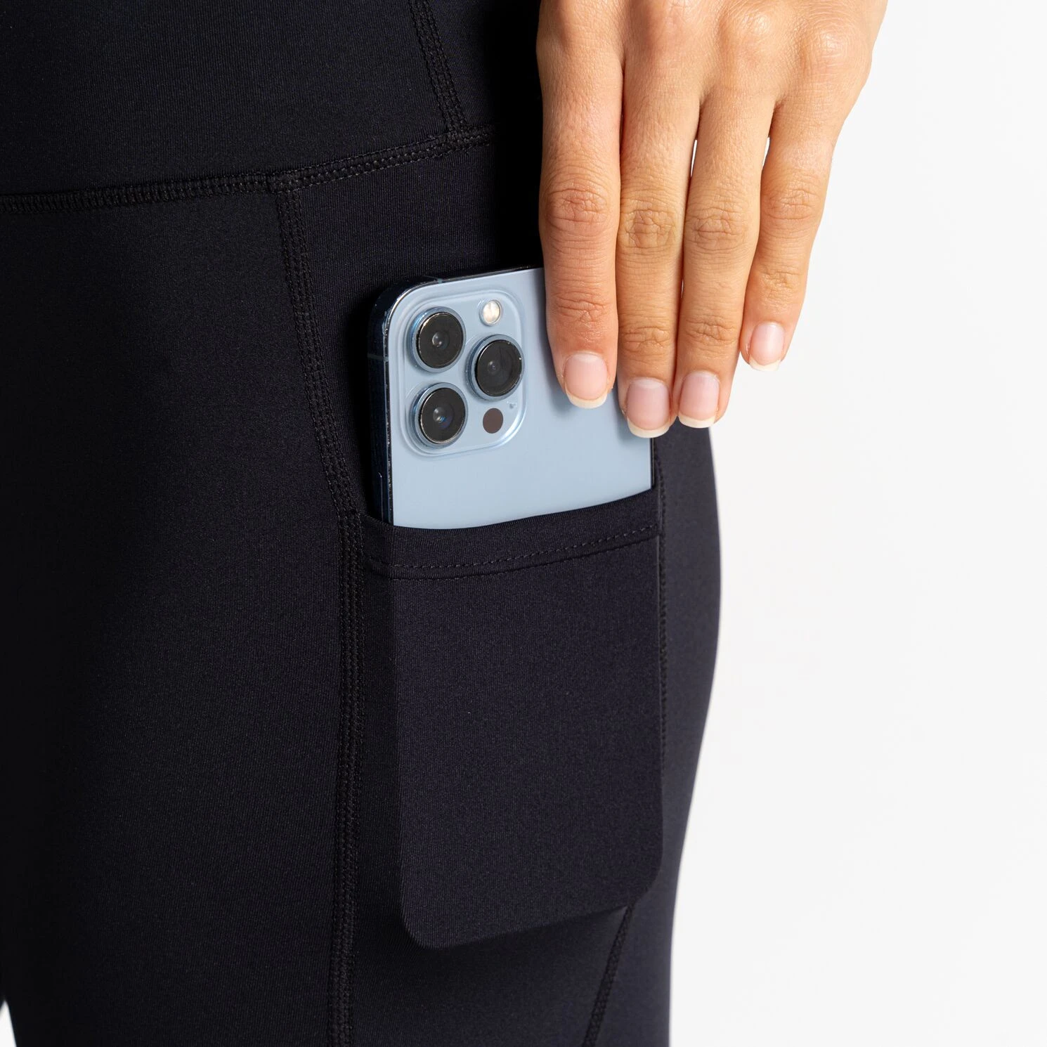 Damen Leggings Influential II Legging der Marke Dare 2b. Das leichte Quick-Dry & Fresh Gewebe leitet Schweiß ab, trocknet schnell und beugt Geruchsbildung vor. Perfekter Komfort für jede Bewegung.
