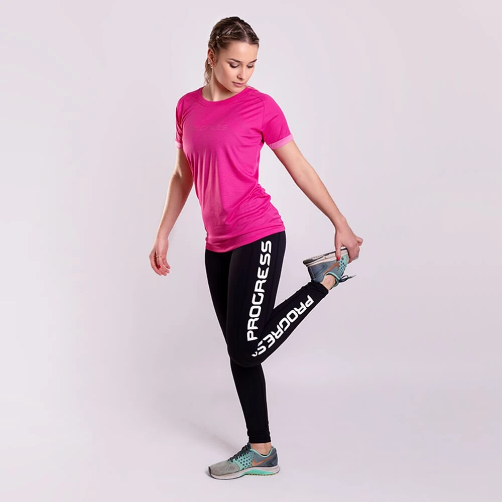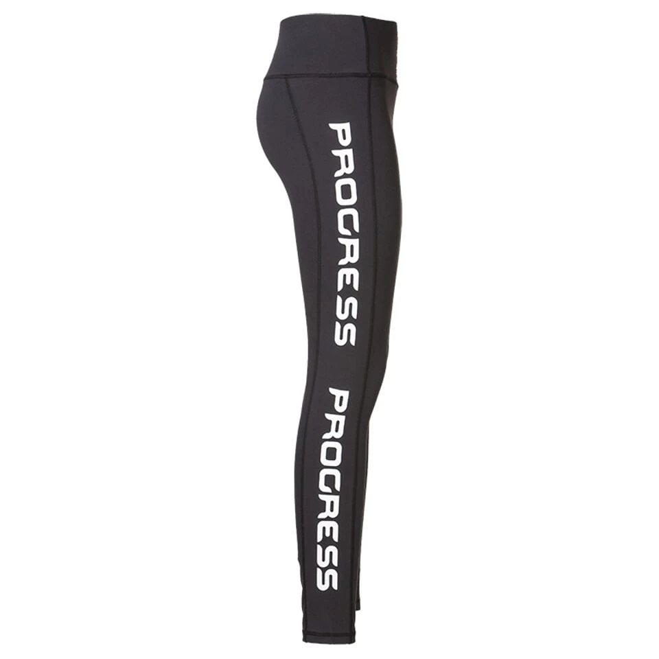 Die Damen Leggings Progress Cannia überzeugt durch ihr Designelement in Form eines Logos seitlich am Bein, sowie durch Elastizität und angenehmes Material.