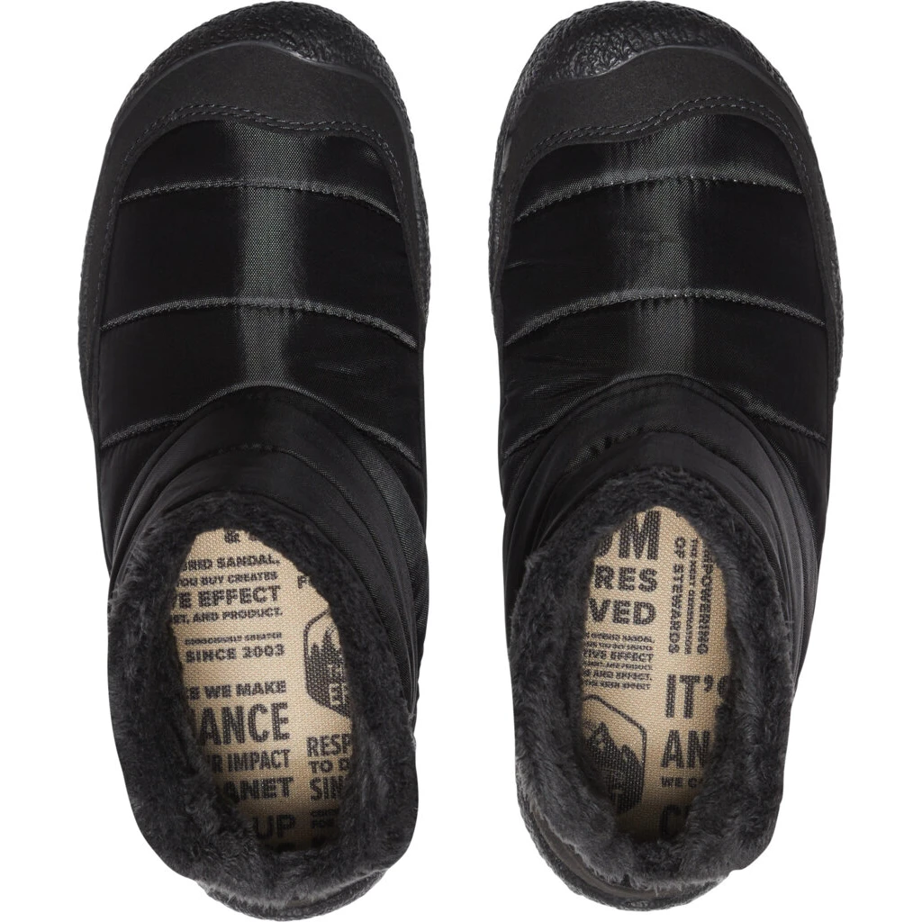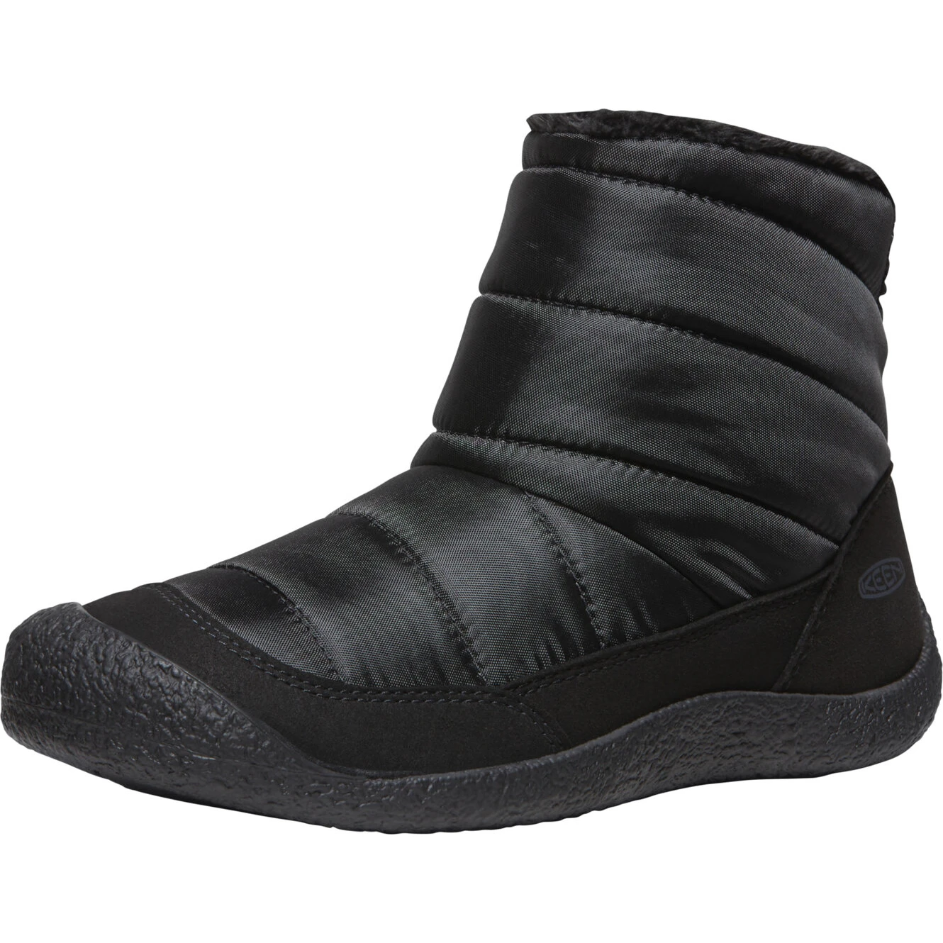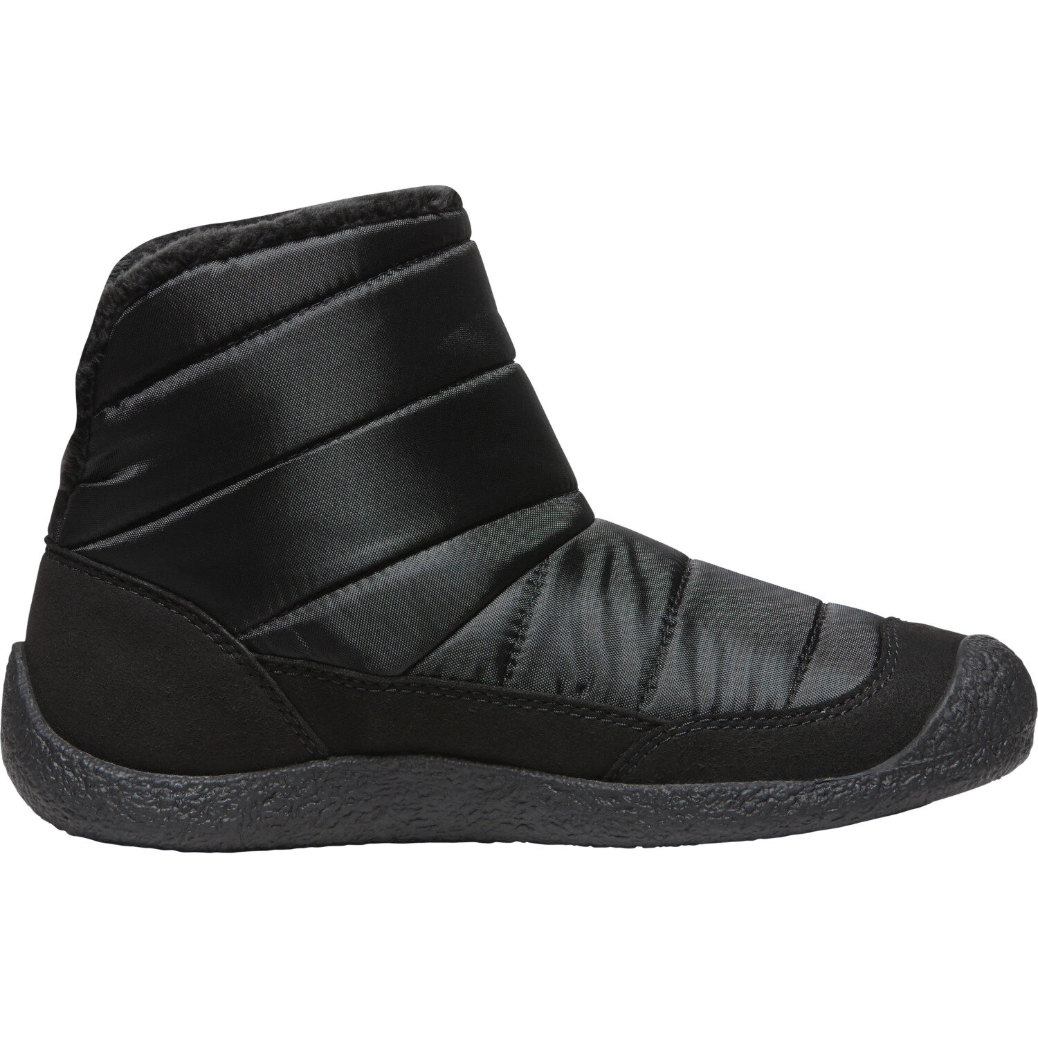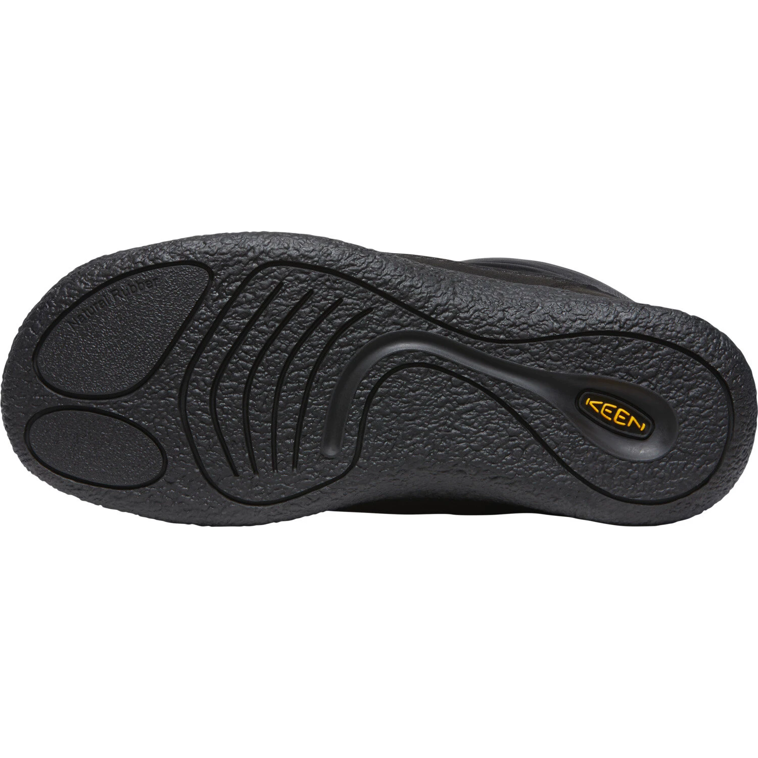 Damen-Hausschuhe Howser Lite Fold Down Women der Marke Keen bieten neben Komfort eine Reihe toller Funktionen. Das Nylon-Obermaterial aus recyceltem Kunststoff ist robust und leicht. DerContoured Fit KEEN-Schnitt folgt den Konturen des Fußes und sorgt so für eine perfekte Passform des Schuhs. Die Gummisohle bietet guten Halt und hinterlässt keine Spuren. Das Fleecefutter sorgt für thermischen Komfort und die antibakterielle Eco Anti-Odor-Technologie, die frei von Schwermetallen oder gefährlichen Chemikalien ist, bekämpft Fußgeruch.