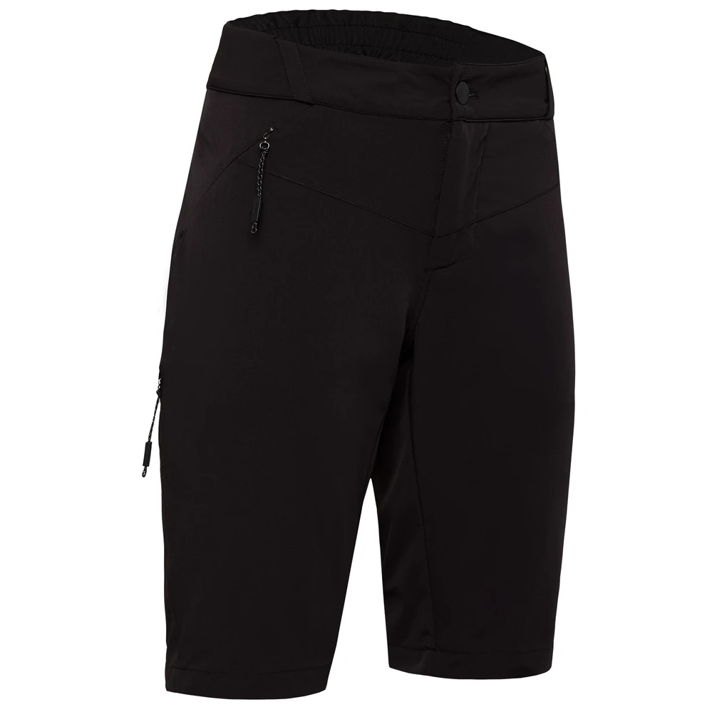 Leichte MTB-Shorts für Damen über dem Knie aus flexiblem und atmungsaktivem Woven Light-Material. Die Shorts haben eine schmale Passform, eine erhöhte Taille hinten und drei Reißverschlusstaschen.