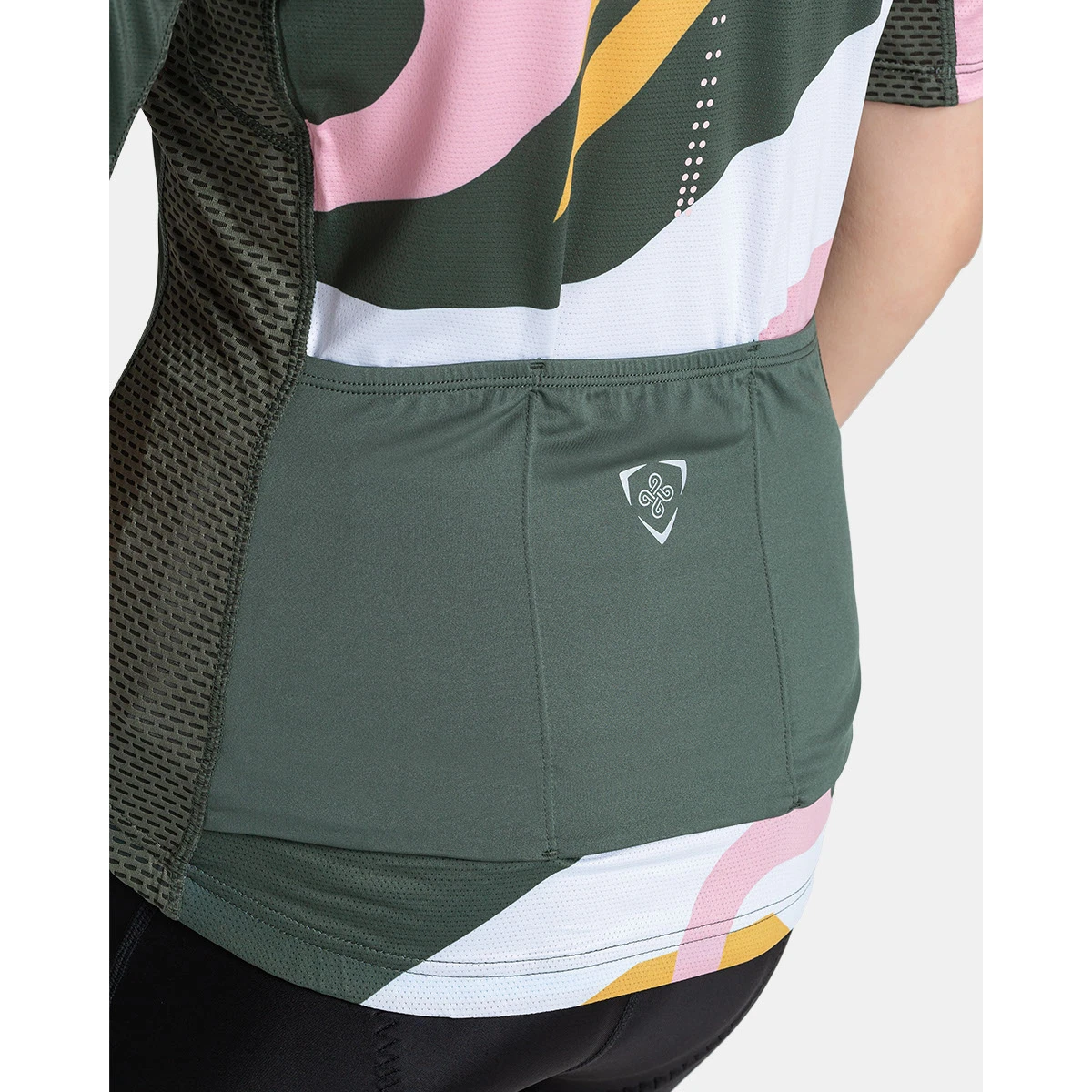 Damen-Radtrikot Kilpi Ritael mit kurzen Ärmeln bis zu einem halben Arm ist zum Straßen- oder Mountainbiken geeignet. Das OPTI-DRY -Material mit Mesh-Einsatz im Achselbereich ist elastisch, schnelltrocknend und angenehm kühl. Flachnähte liegen angenehm auf der Haut. Der lange Reißverschluss und der niedrige Kragen sind mit einem Kinnschutz versehen. Das Trikot ist tailliert geschnitten, sitzt gut und folgt den Kurven des Körpers. Auf der Rückseite befindet sich eine unterteilte Dreifachtasche und seitlich eine Reißverschlusstasche. Reflektierende Elemente am Rücken und an den Ärmeln sind bei Dunkelheit und Dämmerung gut sichtbar.