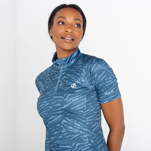 Das Persist Jersey Dare 2b für Damen aus weichem und recyceltem Q-Wic Plus-Gewebe sorgt für Schweißableitung und Geruchsresistenz während der Performance.