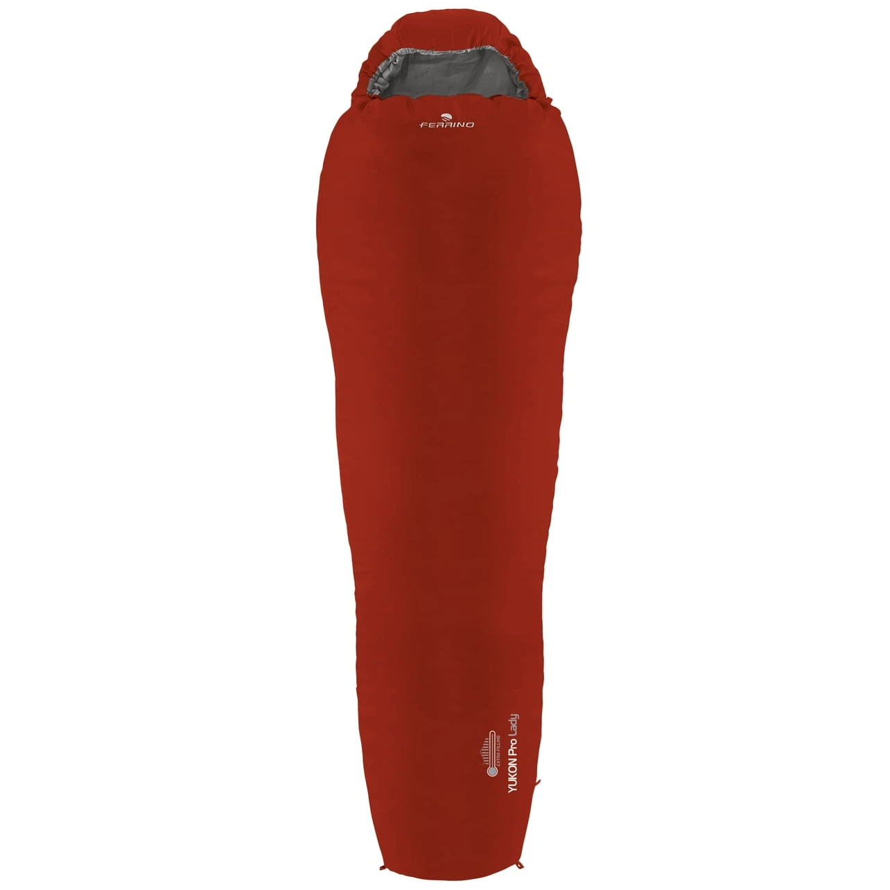 Damenschlafsack Yukon Pro Lady der Marke Ferrino mit synthetischer Hohlfaserfüllung, die für eine hervorragende Wärmeleistungsorgt. Da die Nähte nirgends aufeinander treffen, werden große Wärmeverluste vermieden. Der lange Reißverschluss ist durch eine isolierte Klappegeschützt. Der Innenkragen erhöht den Tragekomfort, wärmt angenehm und ist in der Lage, Feuchtigkeit vom Körper weg an die Oberfläche des Schlafsacks zu transportieren. Die Haube lässt sich mit einer Hand über das One Touch-Systemherunterziehen. Es eignet sich hervorragend zum Campen, für den Campingplatz oder die Hütte vom Frühling bis zum Herbst.