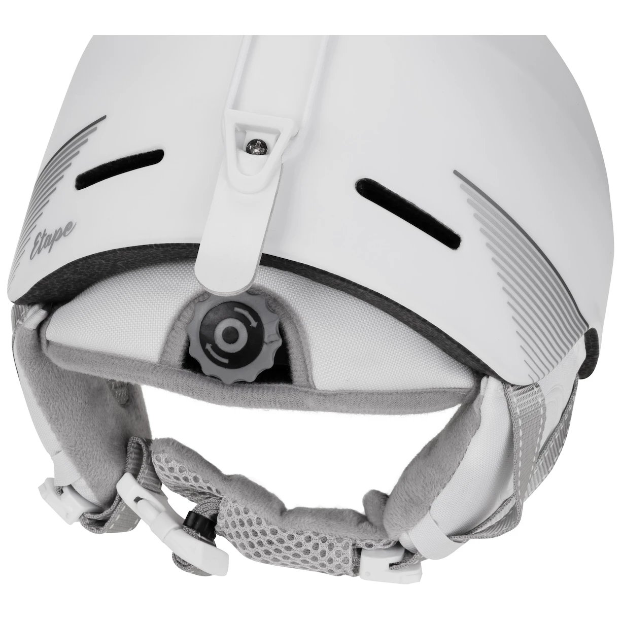 Der Damen Skihelm Etape Cortina überzeugt durch sein geringes Gewicht von nur 310 g. Es wird mithilfe moderner In-Mold-Technologie hergestellt und ist mit 10 Belüftungslöchern ausgestattet. Der Helm sitzt perfekt und ist dank der weichen Ohrenmuscheln sehr bequem. Eine Helmzulassung nach der europäischen Norm EN 1077 ist für uns selbstverständlich.