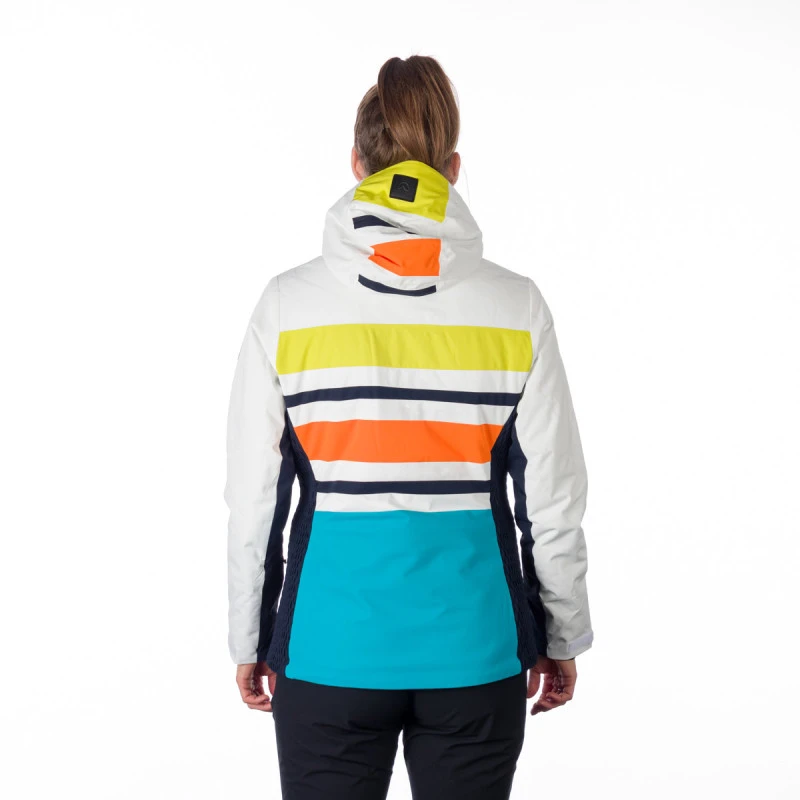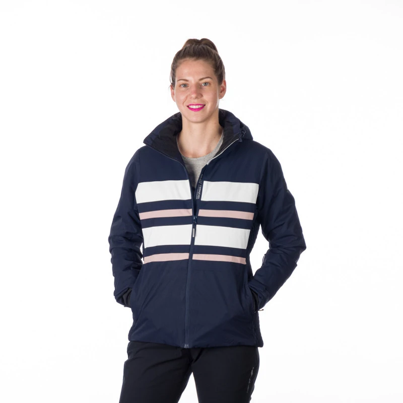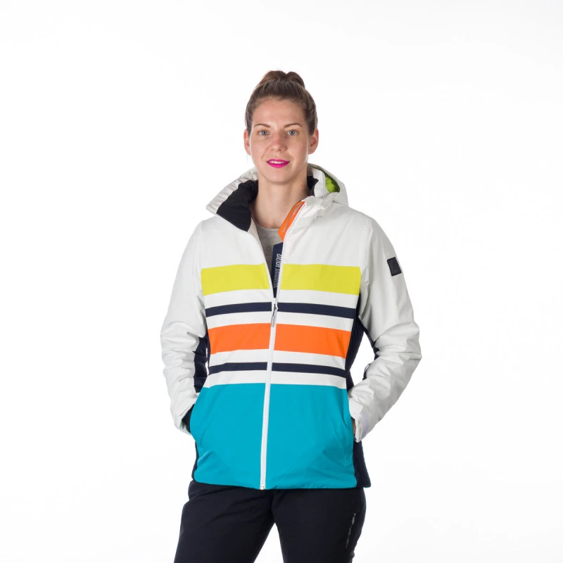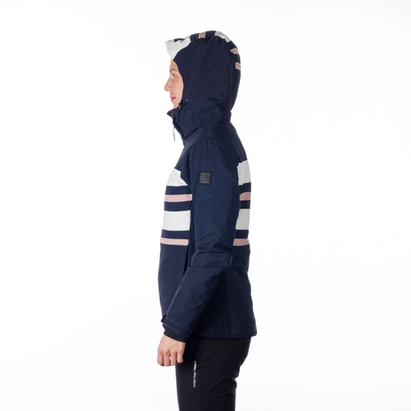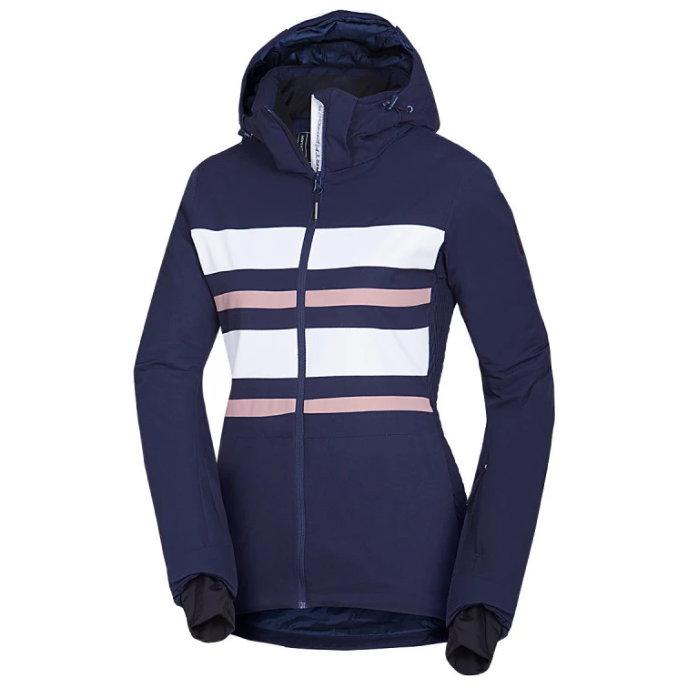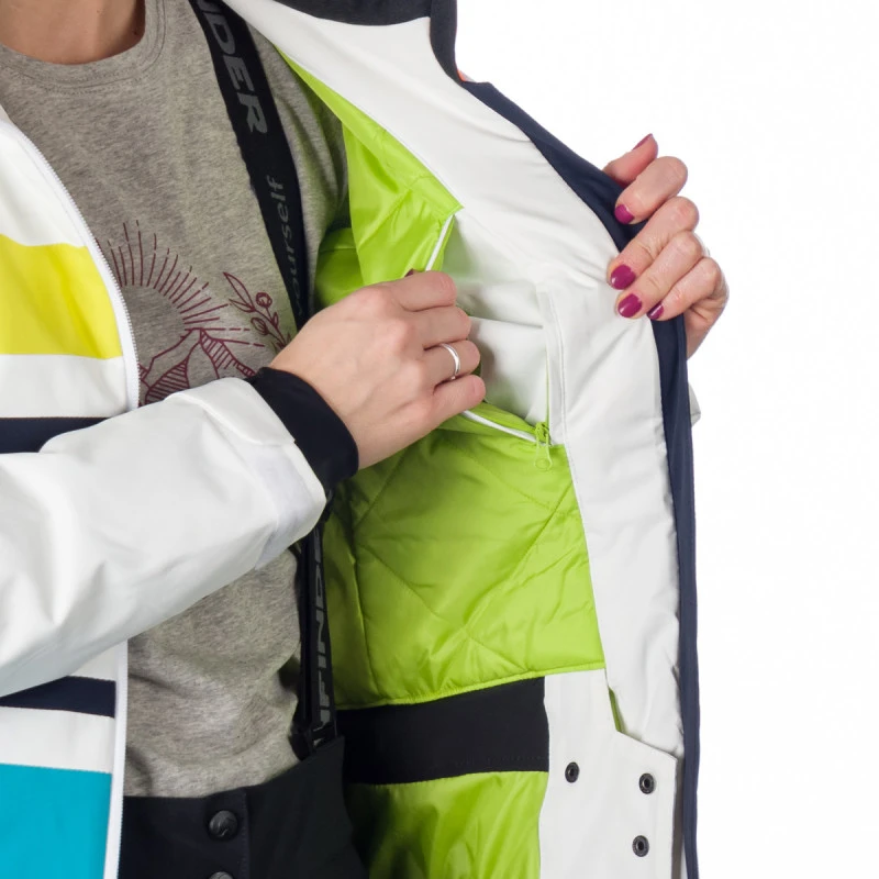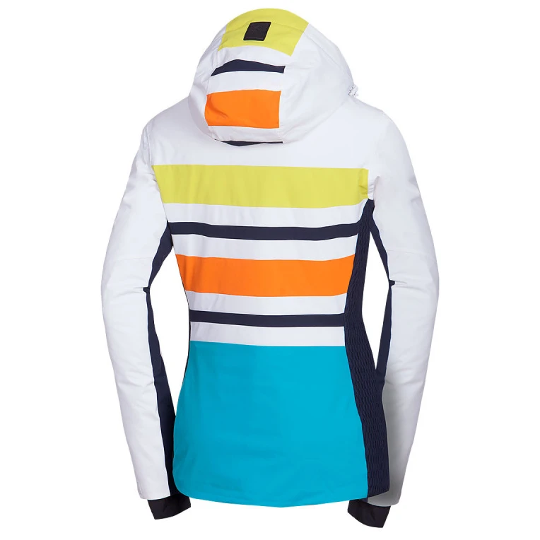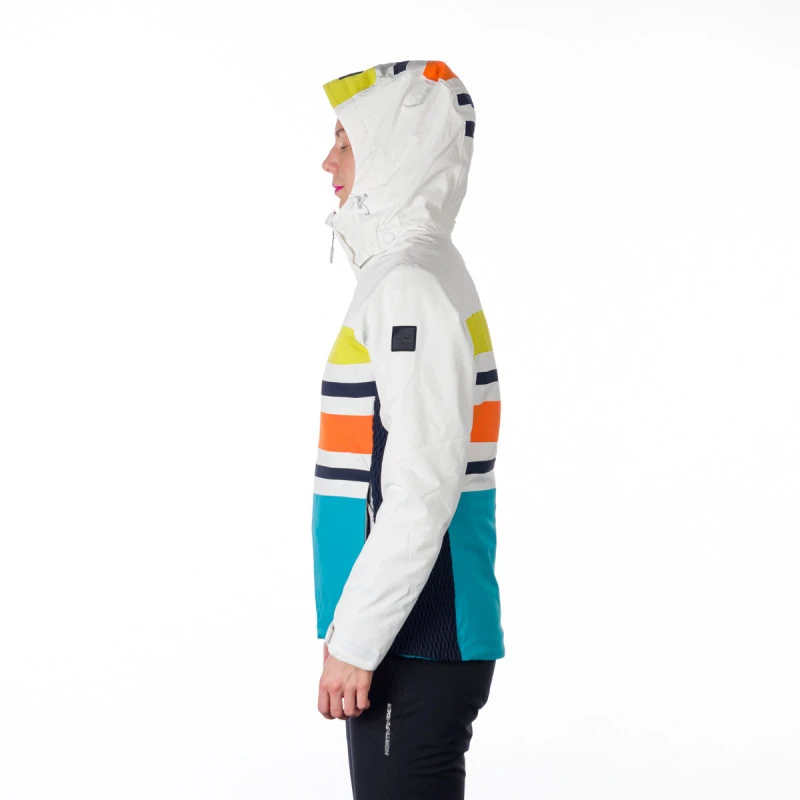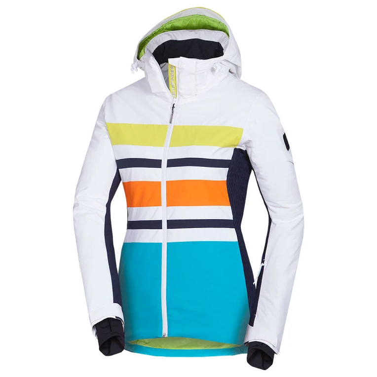Damen Skijacke Ann der Marke Northfinder mit einer 10000/10000 Membran mit diversen Accessoires wie wie abnehmbare Kapuze, Skipasstasche, PFC frei, etc. Die Jacke ist im modernen Designgestaltet, sieht sportlich aus, kann aber auch als Freizeitjacke getragen werden.