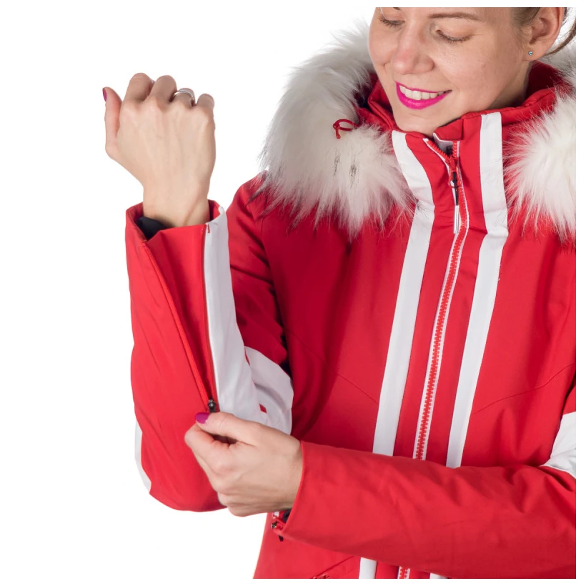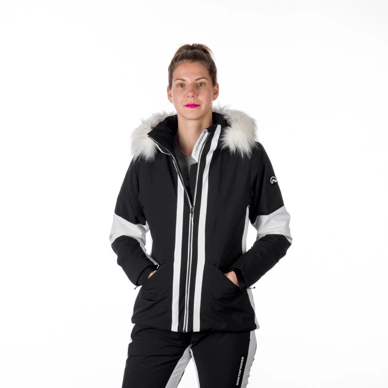 Damen Skijacke Zella der Marke Northfinder mit 5000/5000 Membran mit diversen Accessoires wie abnehmbarer Kapuze, Skipasstasche, YKK® Reißverschlüssen, PFC frei, etc. Die Jacke ist im modernen Designgestaltet, sieht sportlich aus, kann aber auch als Freizeitjacke getragen werden.