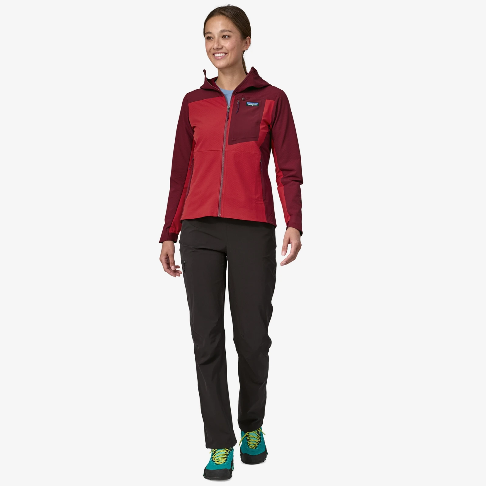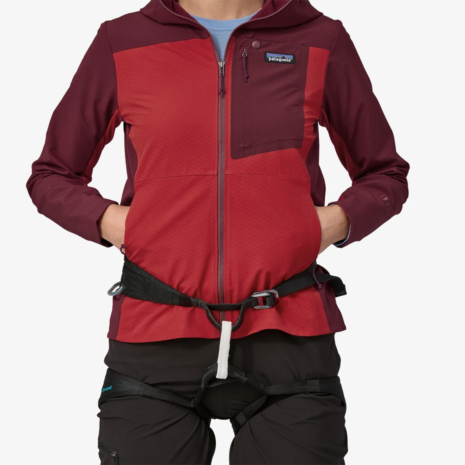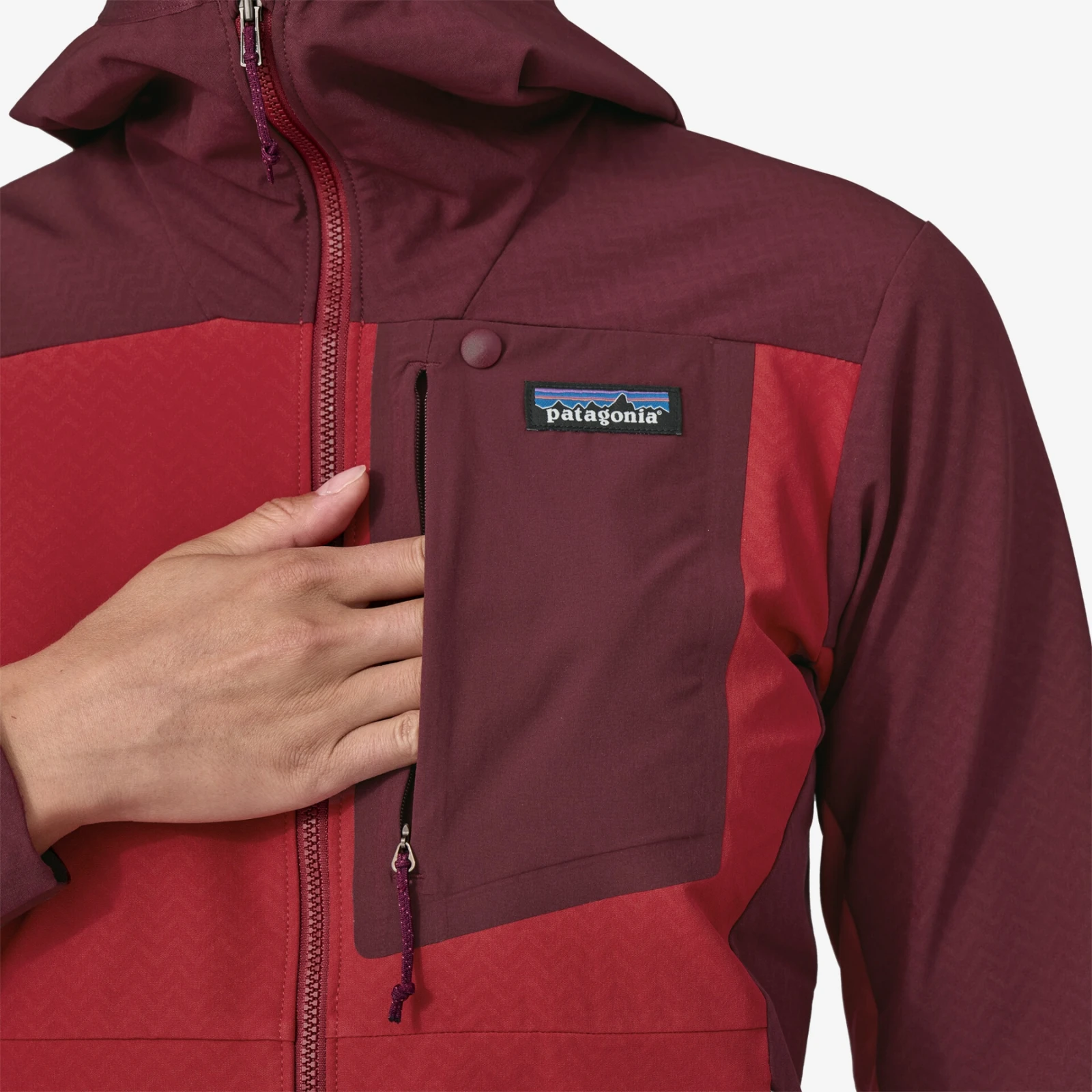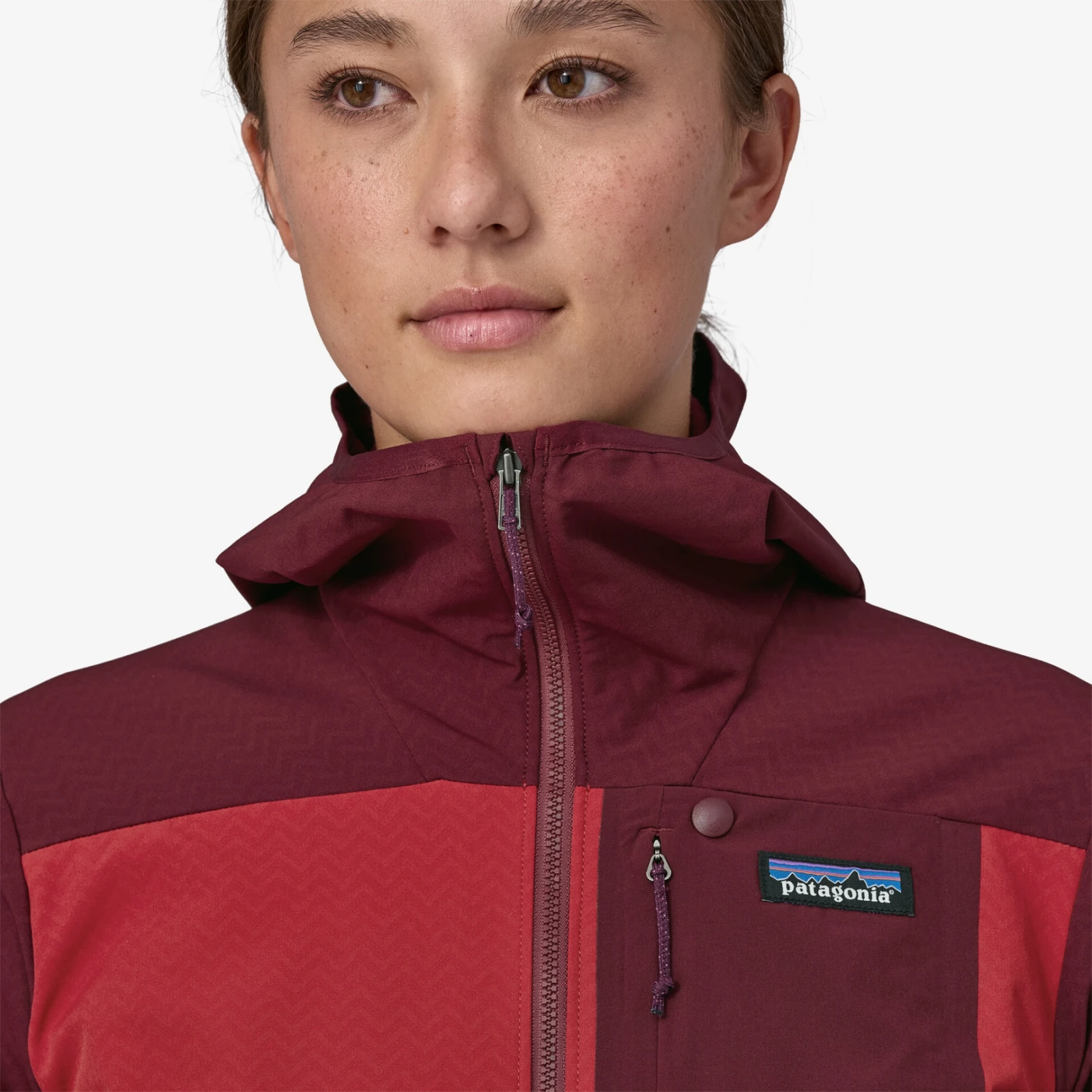 Die Jacke ist auf maximale Bewegungsfreiheit ohne Einschränkungen ausgelegt und ist daher mit vorgeformten Schultern und flexiblem Elastan ausgestattet. Zu den weiteren Vorteilen zählen eine Kapuze mit elastischem Saum, die bequem unter einen Helm passt, ein Reißverschluss mit Kinnschutz, ein hoher Kragen sowie flache Bündchen und Saum. Sie können Ihre Sachen in zwei Brusttaschen oder zwei seitlichen Reißverschlusstaschen verstauen. Die Jacke verfügt über die Fair Trade Certified™-Zertifizierung, die faire Bedingungen und Bewertung gewährleistet.