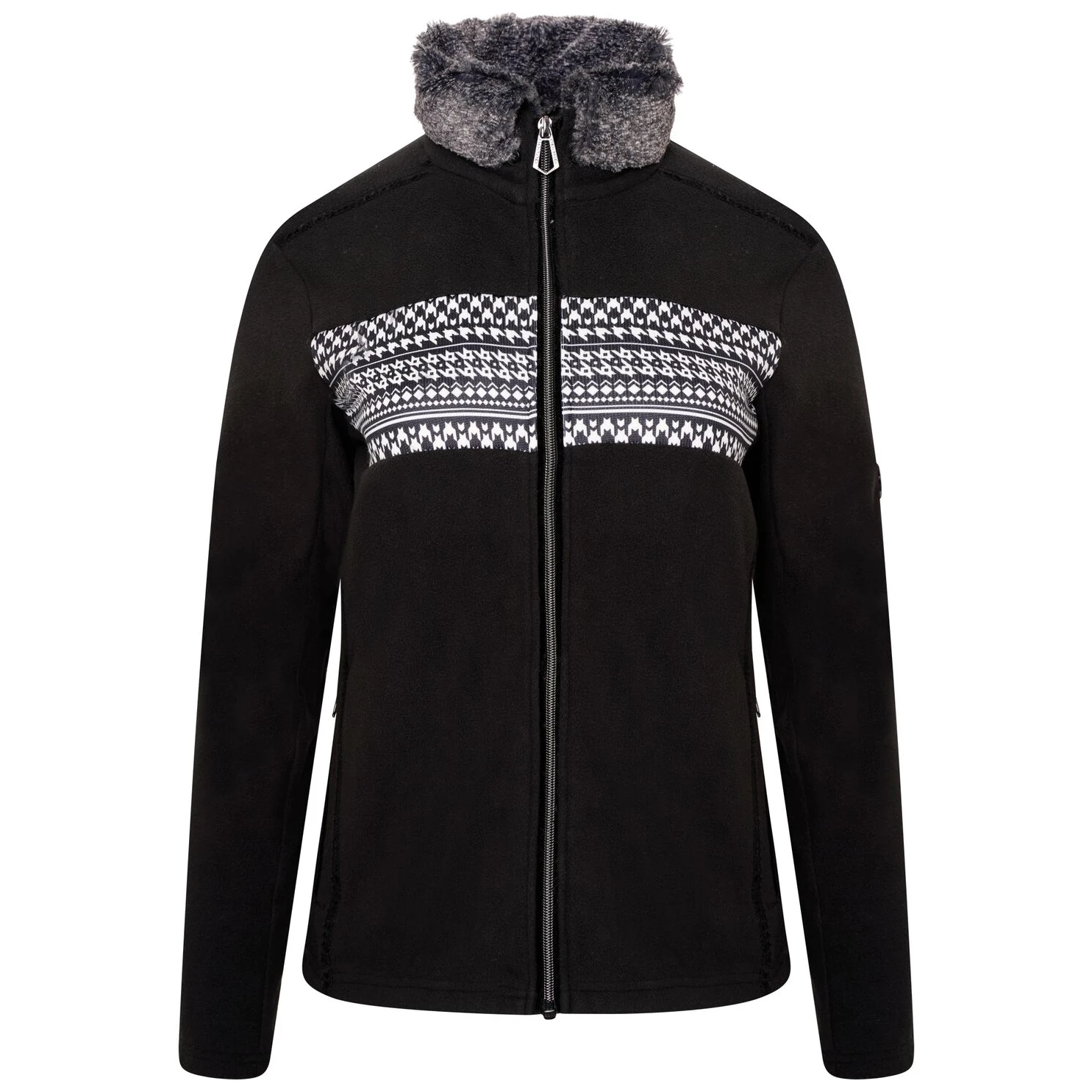 Damenpullover Der Engross Zip Through Sweater der Marke Dare 2b besteht aus Polyesterfleece mit gebürstetem Strickeffekt und bedruckter Besatzbesatz. Erneuern Sie Ihre Garderobe mit diesem unverzichtbaren Stück, das von den Alpen inspiriert ist. Superwarm und weich zu tragen mit abnehmbarem Pelzkragen. Verziert mit Swarovski-Kristallen für einen Hauch von Luxus.