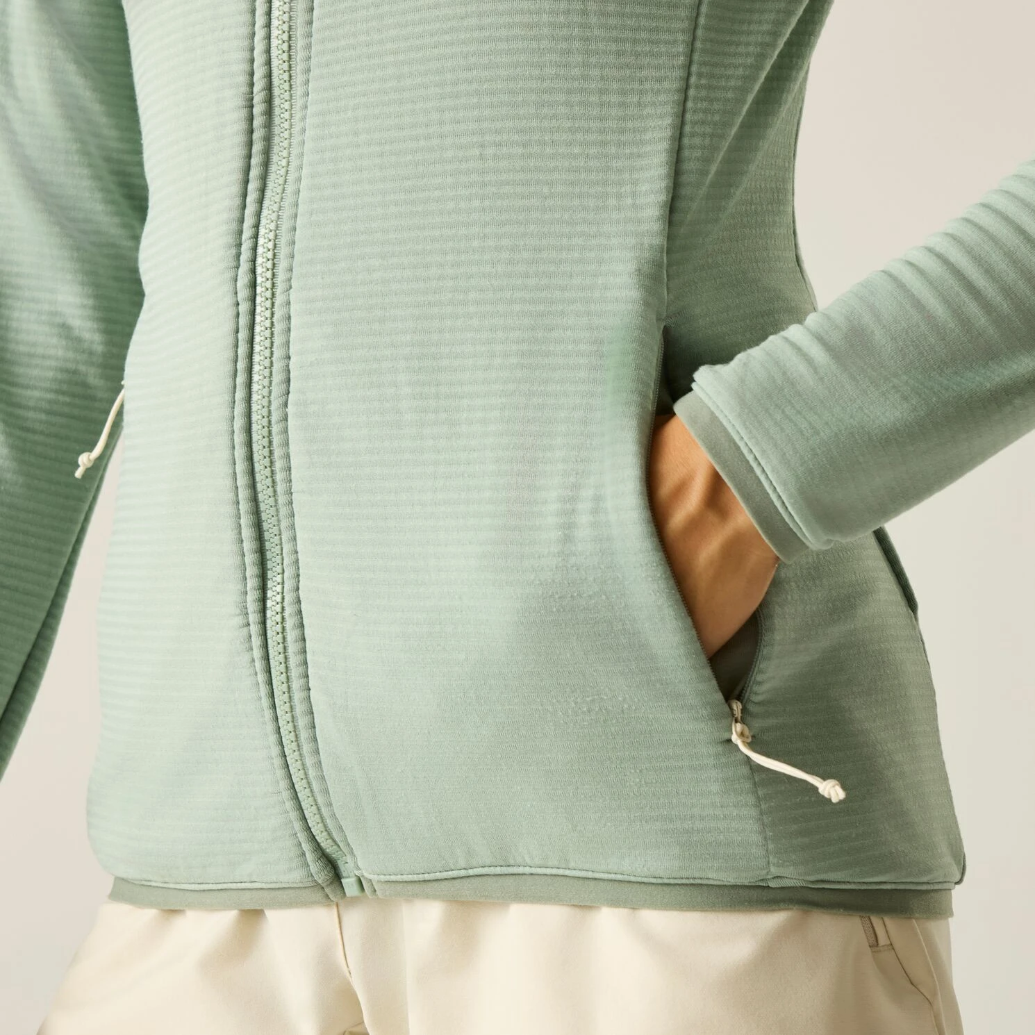 Das Damen-Stretch-Sweatshirt Dare2b Torrek Stretch ist für aktive Bewegungen in den Bergen konzipiert, wo Bewegungsfreiheit und thermischer Komfort im Vordergrund stehen. Es besteht aus einem leichten Stoff mit einem Gewicht von 140 g/m², der recyceltes Polyester und Elastan kombiniert. Die spezielle gestreifte Fleece-Rückseite auf der Innenseite speichert effektiv die Wärme, während das Material insgesamt hoch atmungsaktiv bleibt und sich jeder Ihrer Bewegungen anpasst. Das Sweatshirt ist außerdem mit einer antibakteriellen Behandlungausgestattet, die Gerüche ohne den Einsatz synthetischer Chemikalien verhindert, was Sie insbesondere bei mehrtägigen Wanderungen zu schätzen wissen werden.