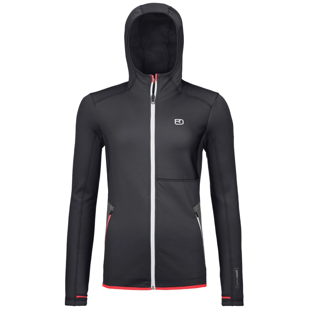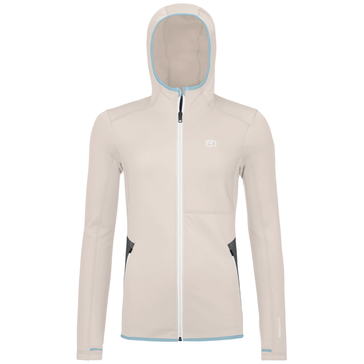 Damen-Sweatshirt Fleece Hoody W der Marke Ortovox hat ein modernes Design, das sich problemlos im Alltag in der Stadt tragen lässt. Die Kombination aus Merinowolle und Polyester verfügt zudem über sehr gute funktionelle Eigenschaften bei anstrengender körperlicher Aktivität. Die tollen Eigenschaften der Merinowolle sorgen dafür, dass Sie es immer warm und trocken haben. Polyester auf der Außenseite erhöht die Widerstandsfähigkeit gegen Abrieb und kalten Wind.
