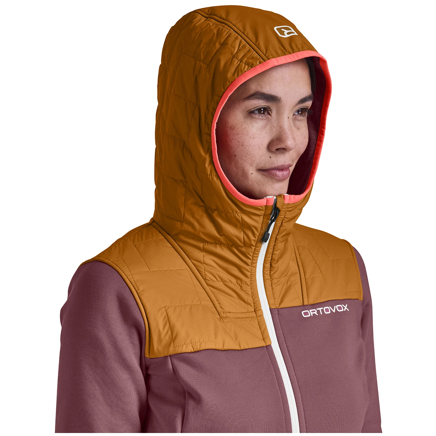 Das Damen Funktionssweatshirt Fleece Plus Hoody M der Marke Ortovox ist die perfekte Wahl für die Freizeit, Spaziergänge in der Natur und alle sportlichen Aktivitäten. Das Sweatshirt besteht aus Hochwertige tasmanische Merinowolle, recyceltes Polyester und elastisches TEC STRETCH-Material im Schulterbereich und in der Kapuze für uneingeschränkte Bewegungsfreiheit. Dieses Full-Zip-Sweatshirt bietet einen hochwertigen YKK®-Reißverschluss, eine bequeme elastische Kapuze, einen verstärkten Kragen und weiches Fleece auf der Innenseite, das das Körperklima auf natürliche Weise reguliert und sich zudem sehr angenehm anfühlt.