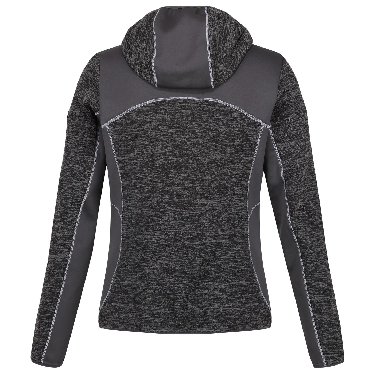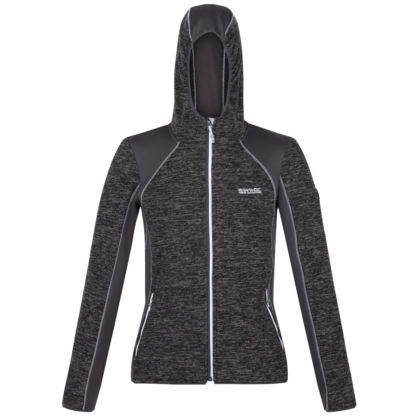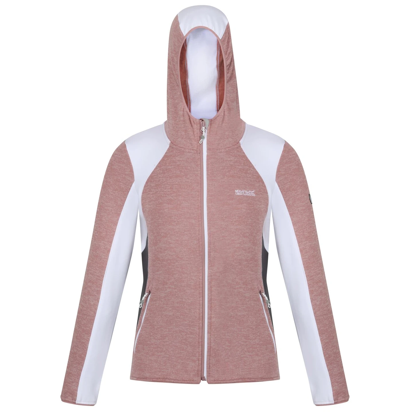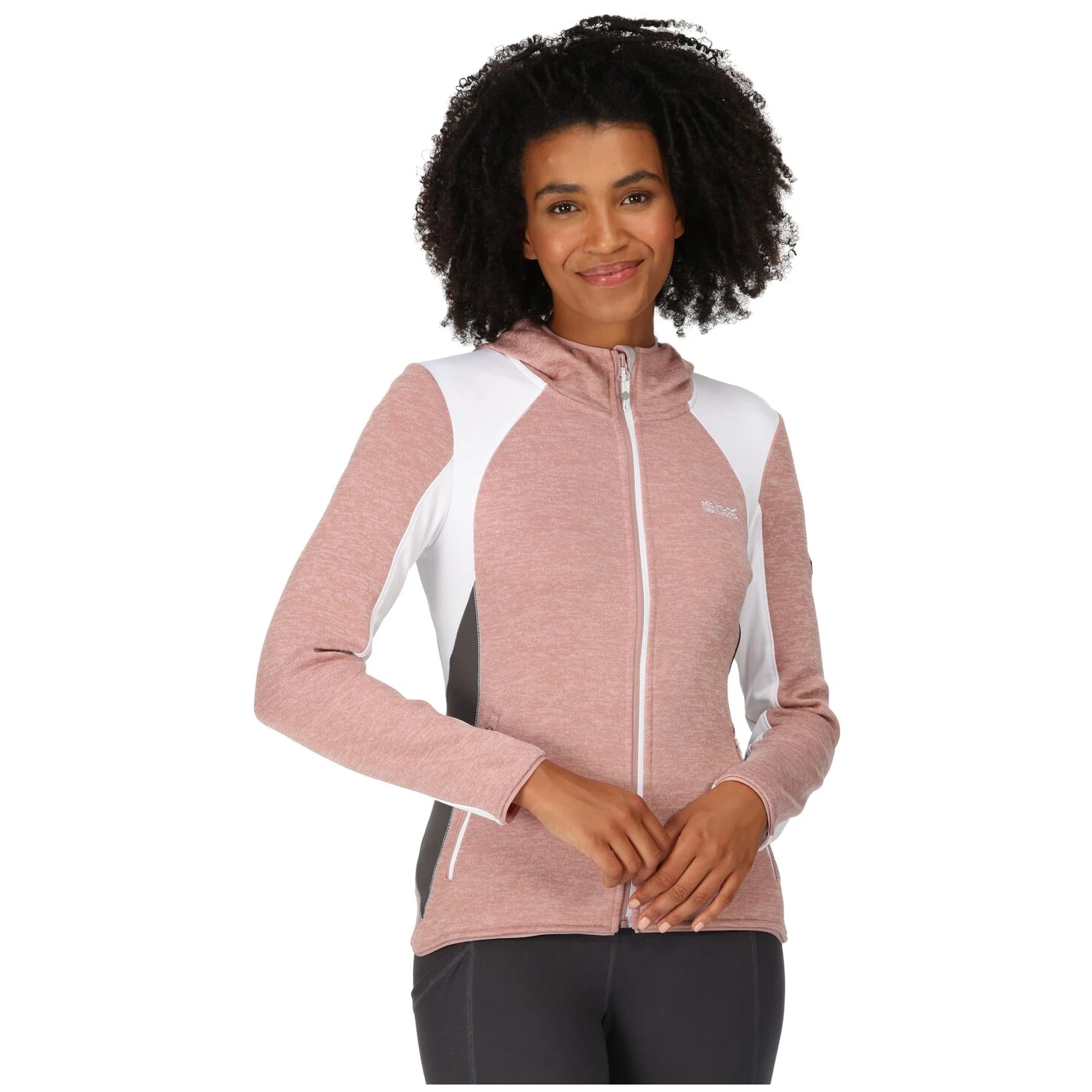Das flexible und sportliche Damen Fleece-Sweatshirt Walbury V der Marke Regatta ist ideal, um aktiv zu bleiben. Damenfleece aus recycelten Plastikflaschen mit Stretcheinsätzen Extol macht Ihre Bewegungen mit. Kleinere Gegenstände können Sie in zwei Reißverschlusstaschen verstauen. Es ist mit dem Firmenlogo auf der Brust verziert. Das Sweatshirt hat eine feste Kapuze mit Besatz, die es gut auf dem Kopf hält.