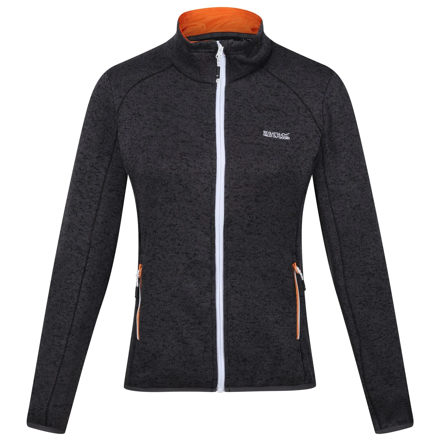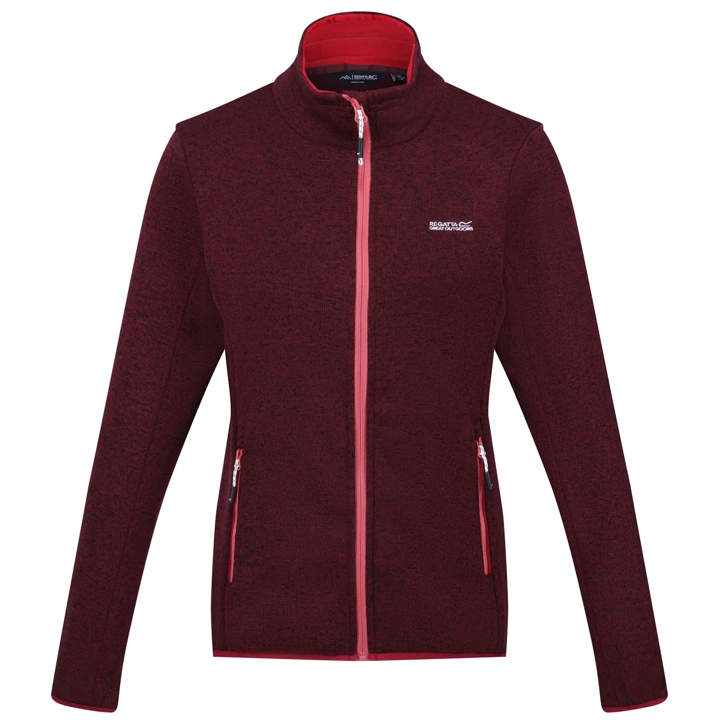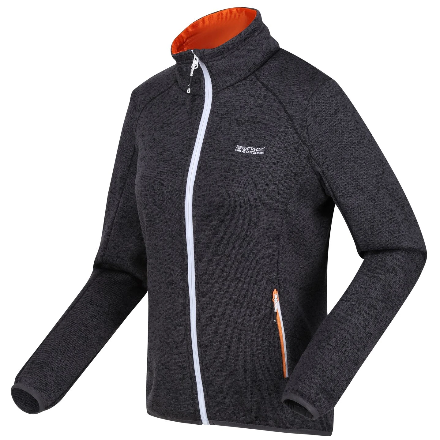 Das sportlich-komfortable Damen Fleece Sweatshirt Newhill mit hohem Kragen vom Hersteller Regatta ist die ideale Schicht für aktive Outdoor-Aktivitäten. Das Damen-Sweatshirt mit Reißverschluss und meliertem Strickeffekt hält Sie bequem und warm. Es wird aus recycelten Plastikflaschen hergestellt. Abgerundet wird es durch praktische Reißverschlusstaschen.