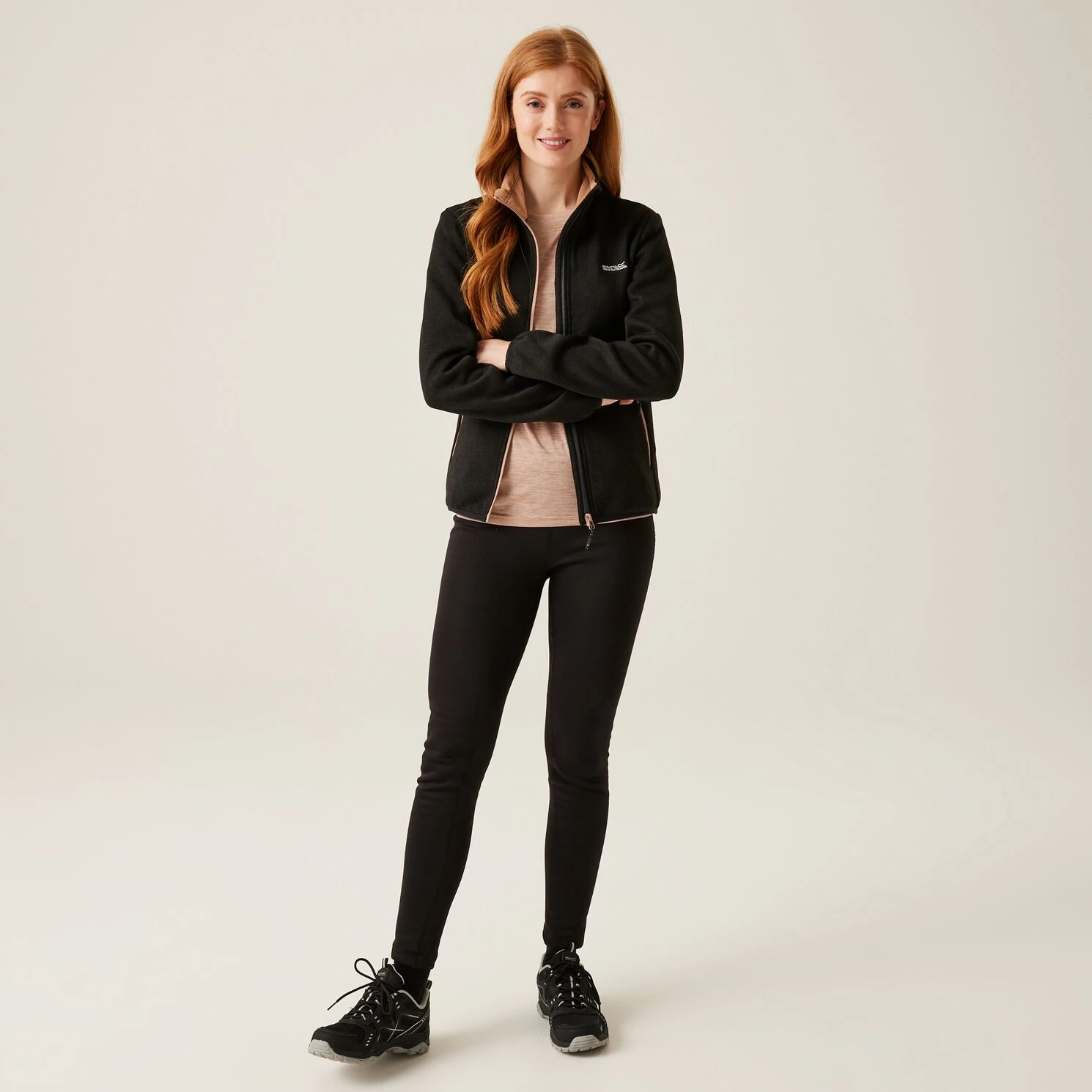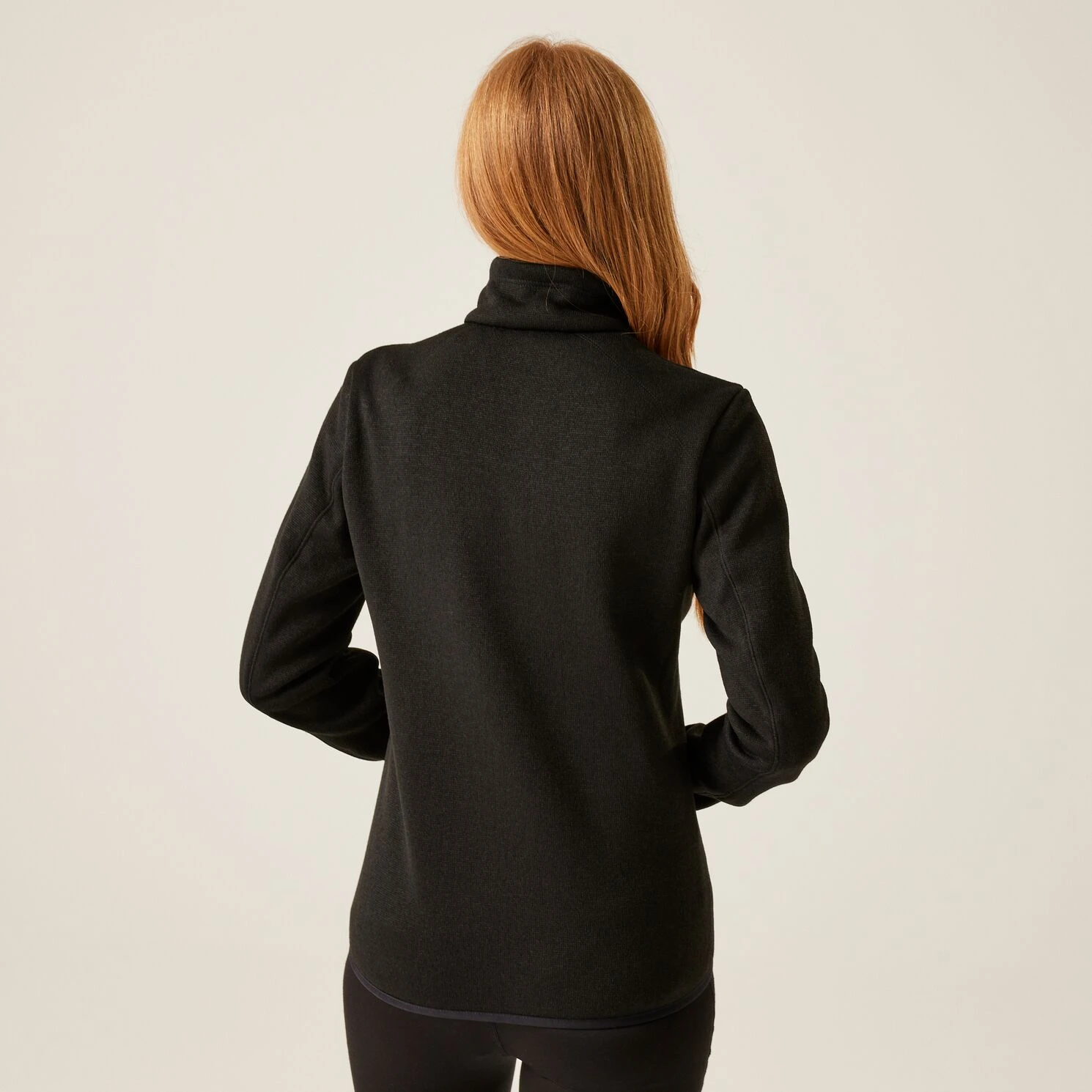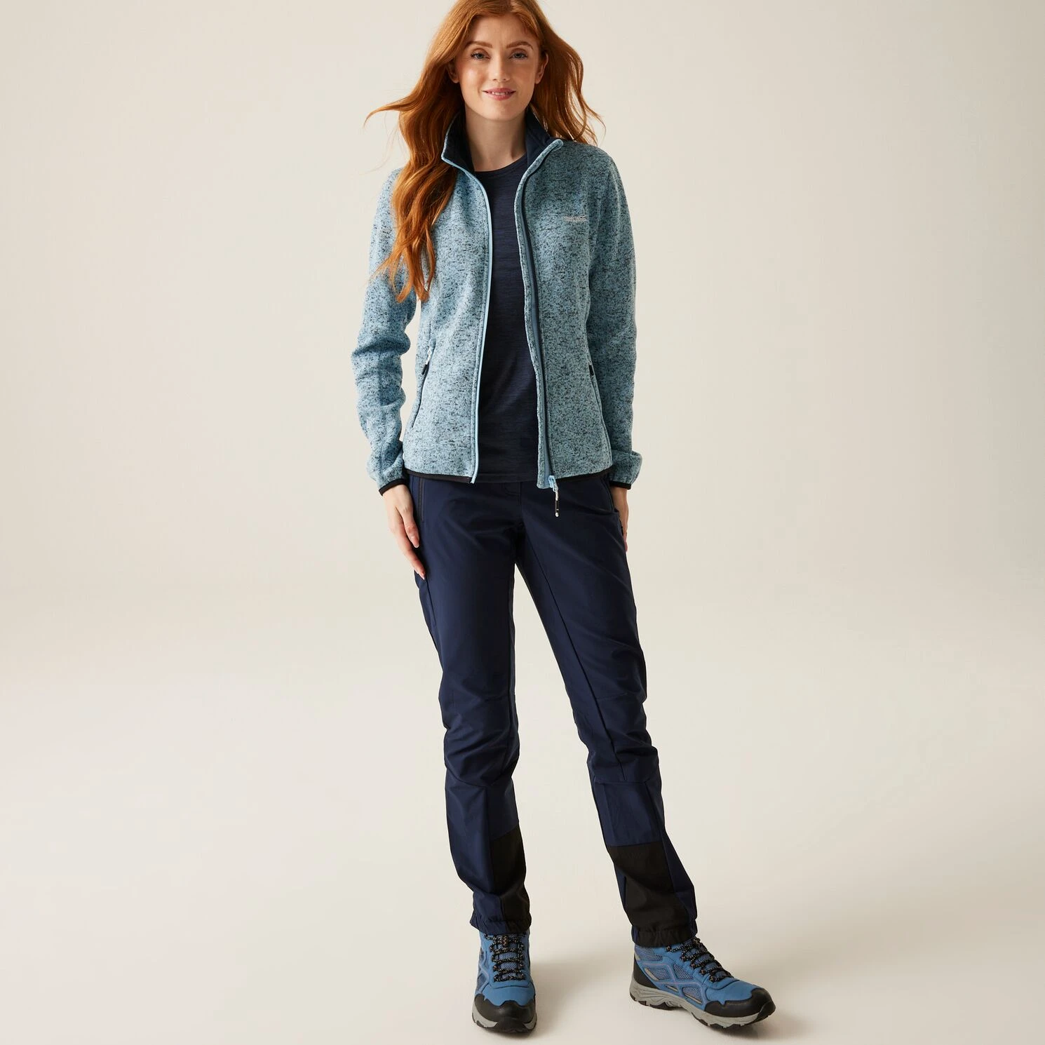 Das sportlich-komfortable Damen Fleece Sweatshirt Newhill mit hohem Kragen vom Hersteller Regatta ist die ideale Schicht für aktive Outdoor-Aktivitäten. Das Damen-Sweatshirt mit Reißverschluss und meliertem Strickeffekt hält Sie bequem und warm. Es wird aus recycelten Plastikflaschen hergestellt. Abgerundet wird es durch praktische Reißverschlusstaschen.