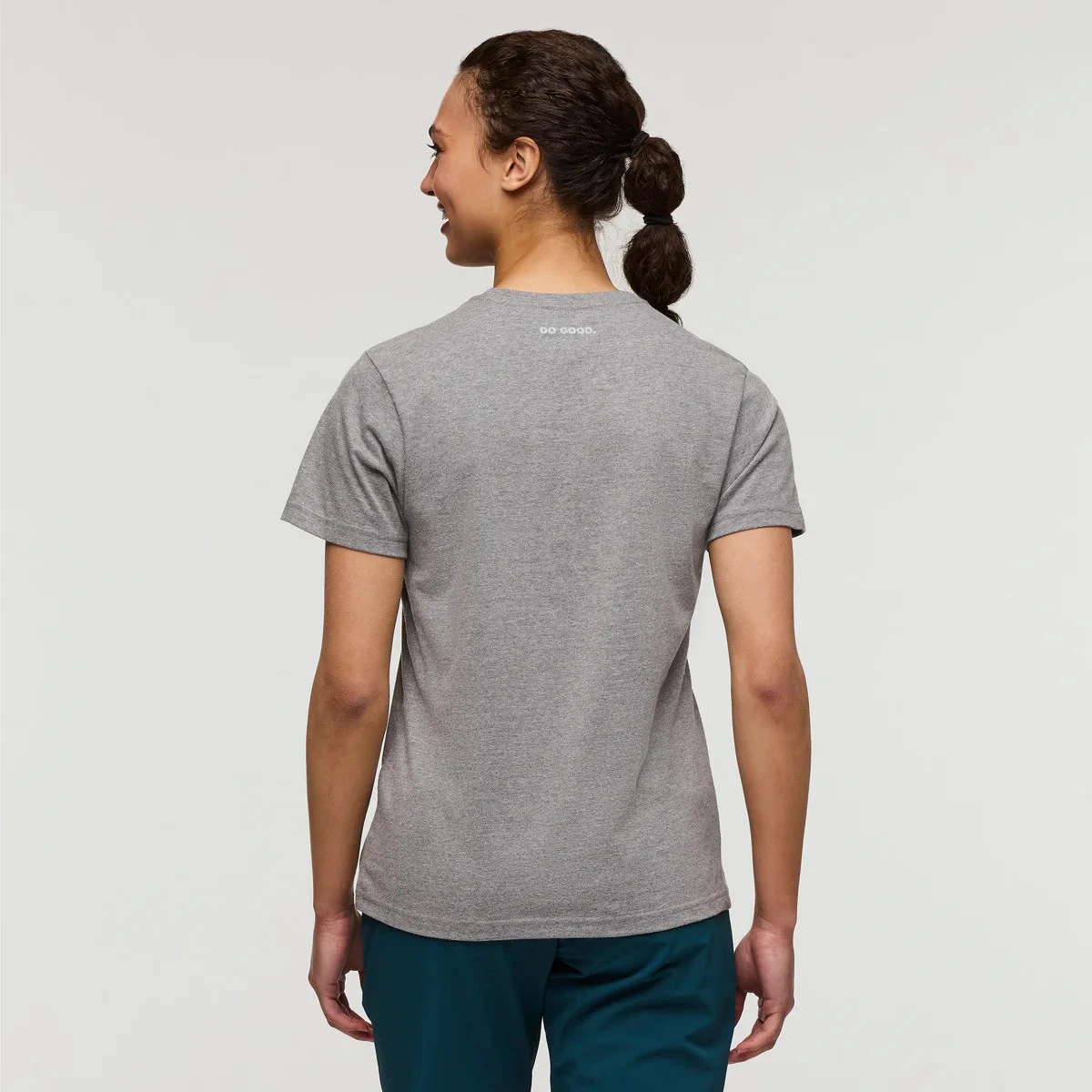 Damen T-Shirt Cotopaxi Lama T-Shirt mit kurzen Ärmeln und einfacher Grafik ist eine Kombination aus modernem Stil und Nachhaltigkeit.
