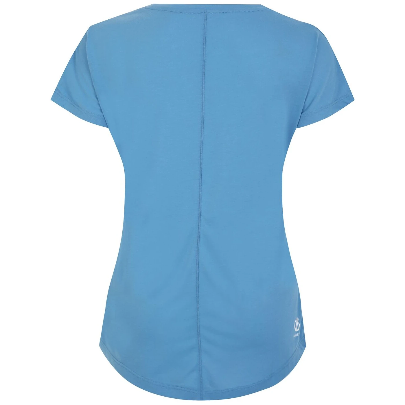 Das Damen T-Shirt Calm Tee Dare 2b überzeugt durch sein angenehmes Single-Jersey-Material aus einem Lyocell- und Polyester-Mix, eine antibakterielle Geruchsbehandlung und einen grafischen Druck.