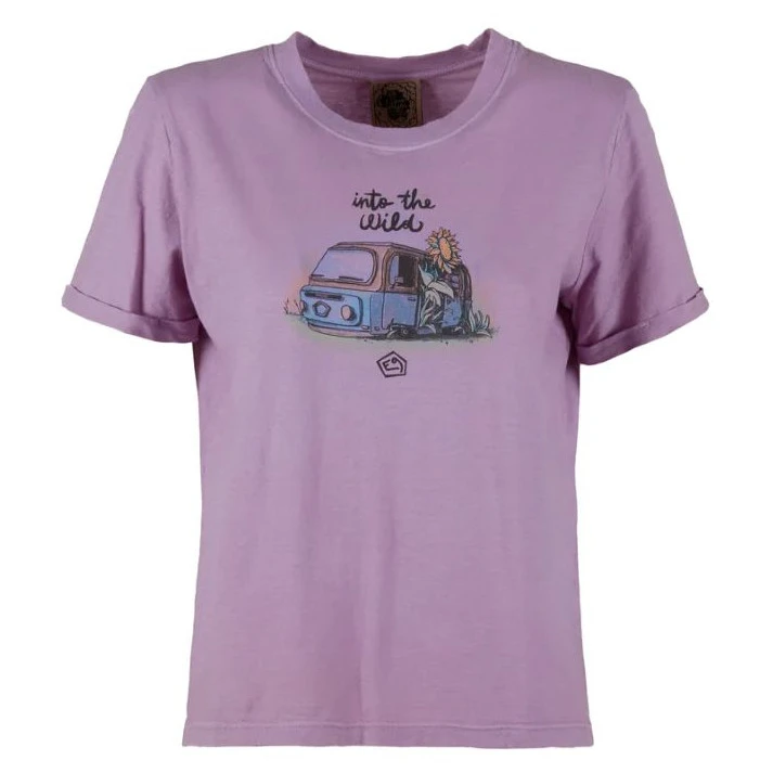 Das moderne Damen-T-Shirt mit kurzen Ärmeln Wild Women's der Marke E9 ist aus 100% Bio-Baumwolle gefertigt. Das T-Shirt hat einen lockeren Schnitt und einen stylischen Aufdruck auf der Brust, der durch den Schriftzug „INTO THE WILD“ noch unterstrichen wird. Es wird in Italien mit minimaler Umweltbelastung und mit Fokus auf extravagante Ausführung, einzigartiges Design und Komfort beim Klettern hergestellt.