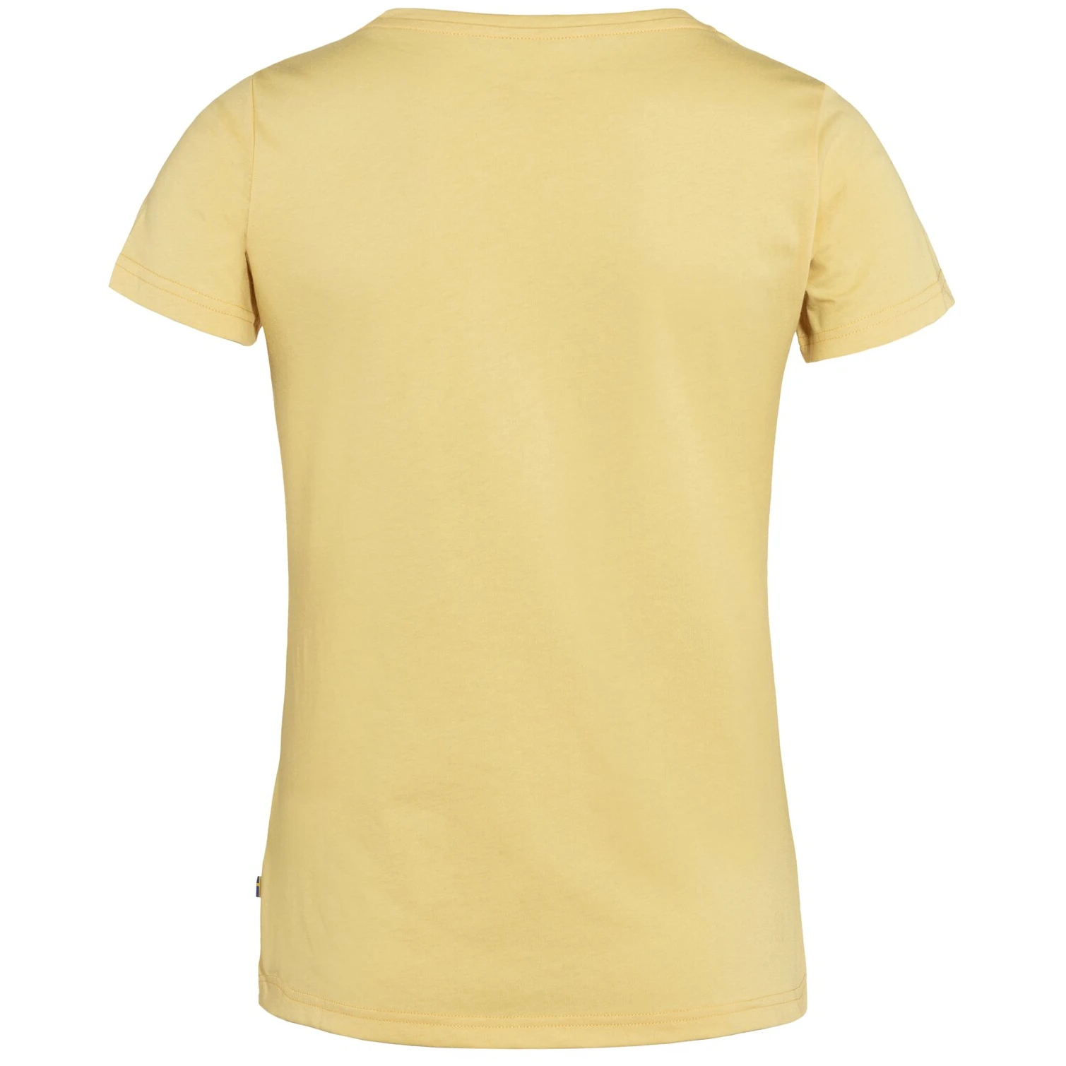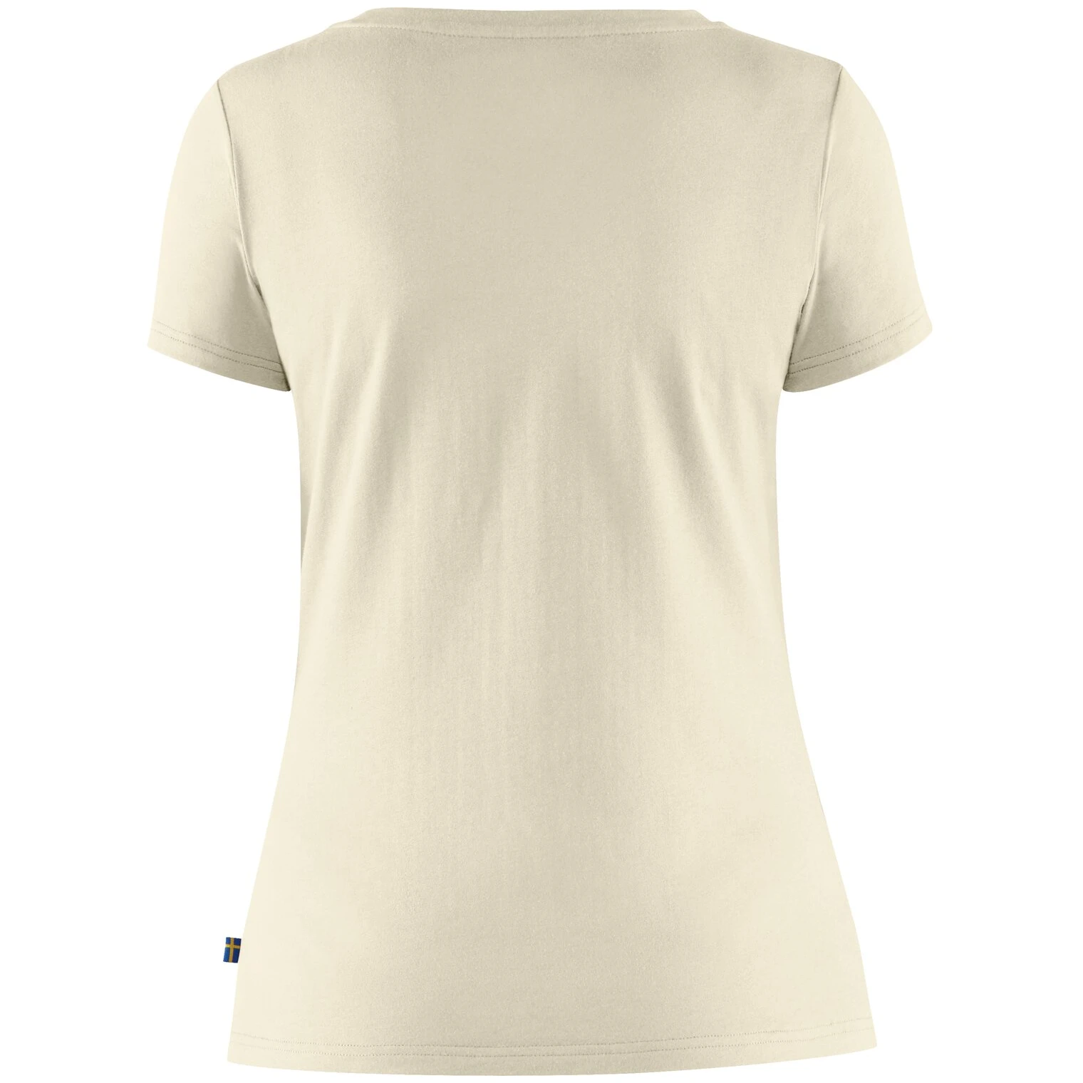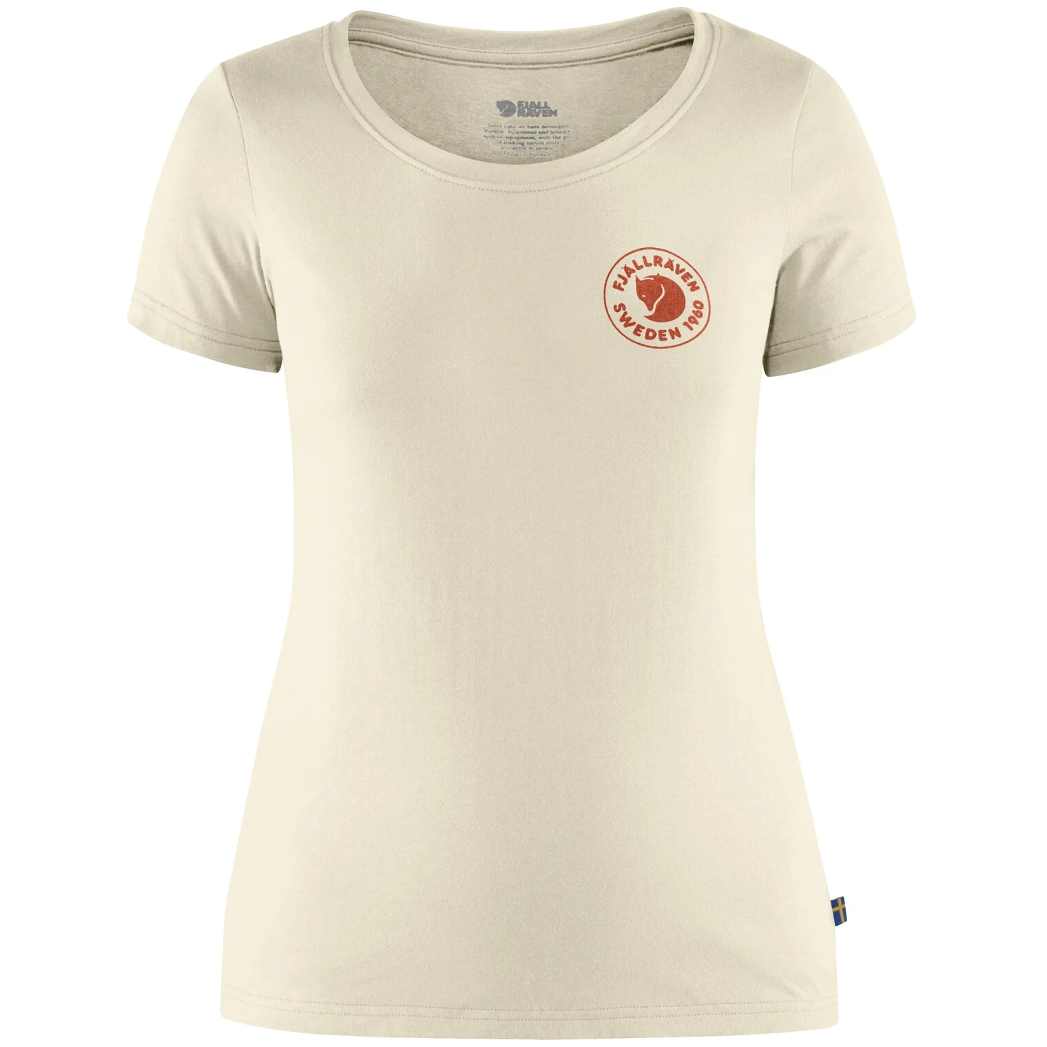 Damen-T-Shirt 1960 Logo T-Shirt W der Marke Fjällräven mit kurzen Ärmeln aus nachhaltigem Jersey-Strick, der die Weichheit von Bio-Baumwolle mit der Funktionalität und Haltbarkeit von recyceltem Polyester kombiniert. Es leitet Feuchtigkeit ab und trocknet schnell, was es in warmen Klimazonen äußerst angenehm macht. Auch der Rundhalsausschnitt und der kleine Logo-Print auf der Brust wirken sehr edel.