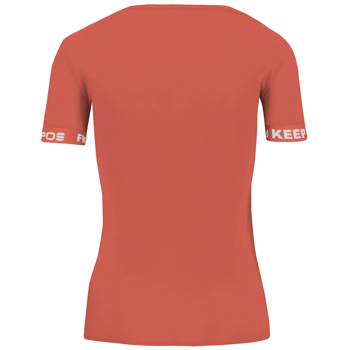 Das leichte, atmungsaktive Easyfrizz W T-Shirt der Marke Karpos bietet eine Kombination aus Komfort und Kühlung und ist somit ideal für Outdoor-Aktivitäten bei heißem Wetter.