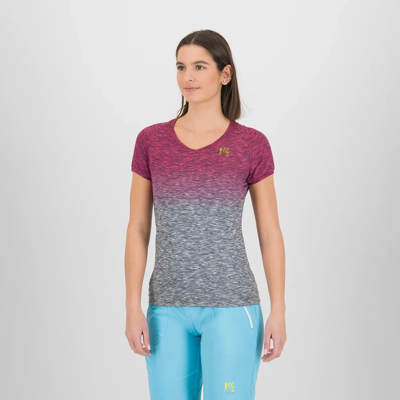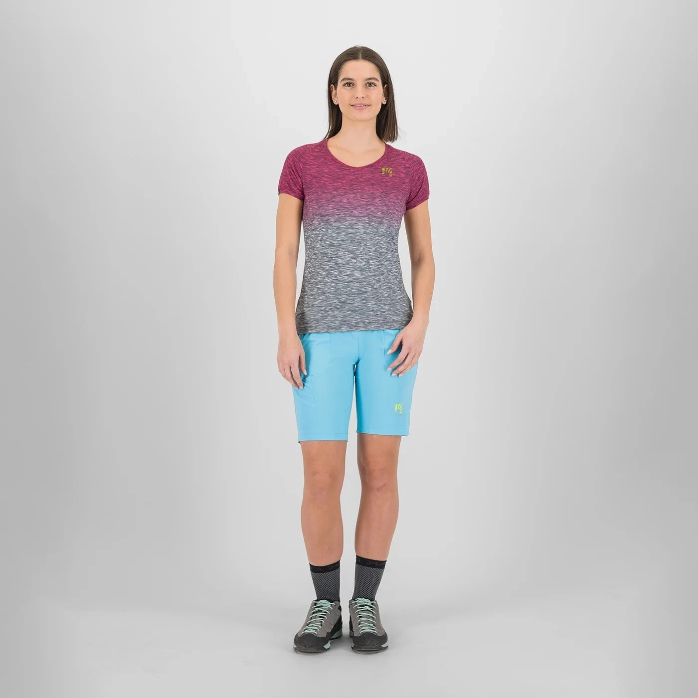 Das Funktionsshirt für Damen Prato Piazza W Jersey von der Marke Karpos mit kurzen Raglanärmeln ist ideal für Trailläufe, Wanderungen und andere Outdoor-Aktivitäten.