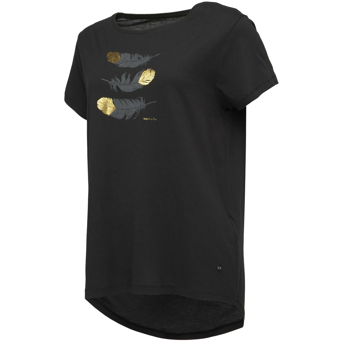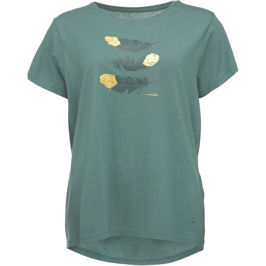Das Damen Kurzarm T-Shirt Loap Asika ist zum ganzjährigen Tragen geeignet. Es ist mit einem Aufdruck mit Federmotiv verziert.