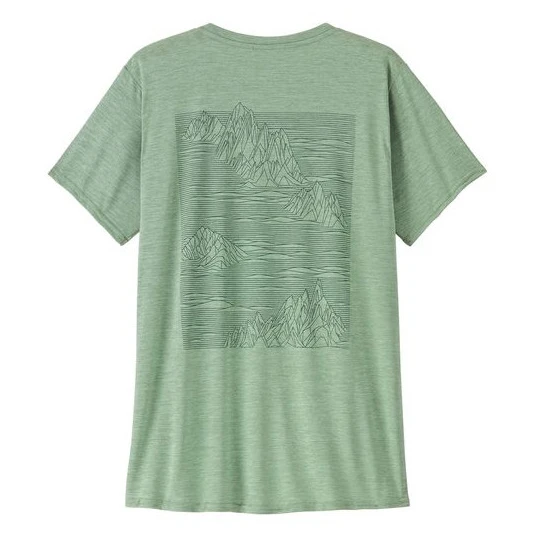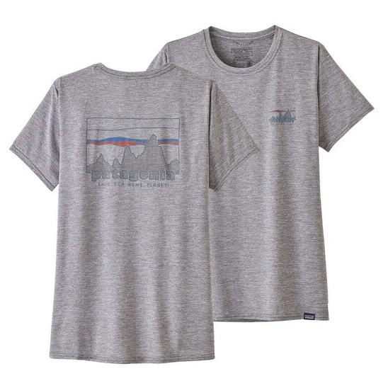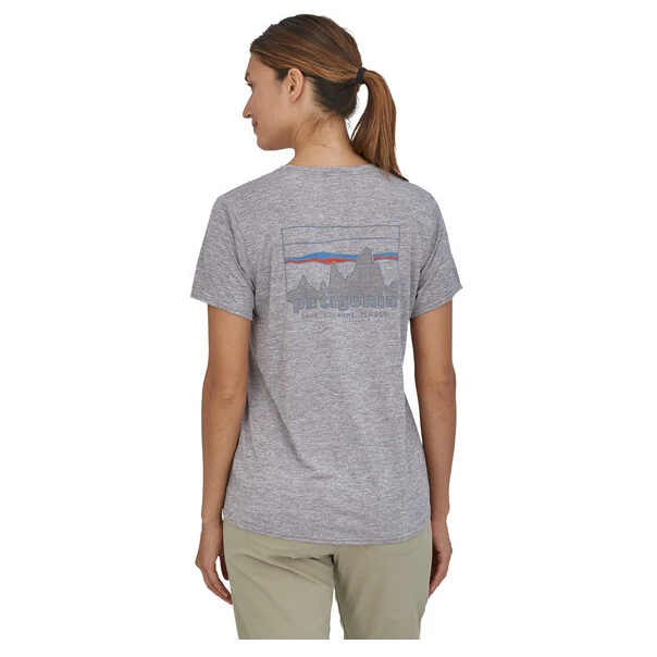 Das Damen Kurzarm-T-Shirt Patagonia W’s Cap Cool Daily Graphic Shirt trocknet schnell, ist geruchshemmend und leitet den Schweiß rasch vom Körper weg.
