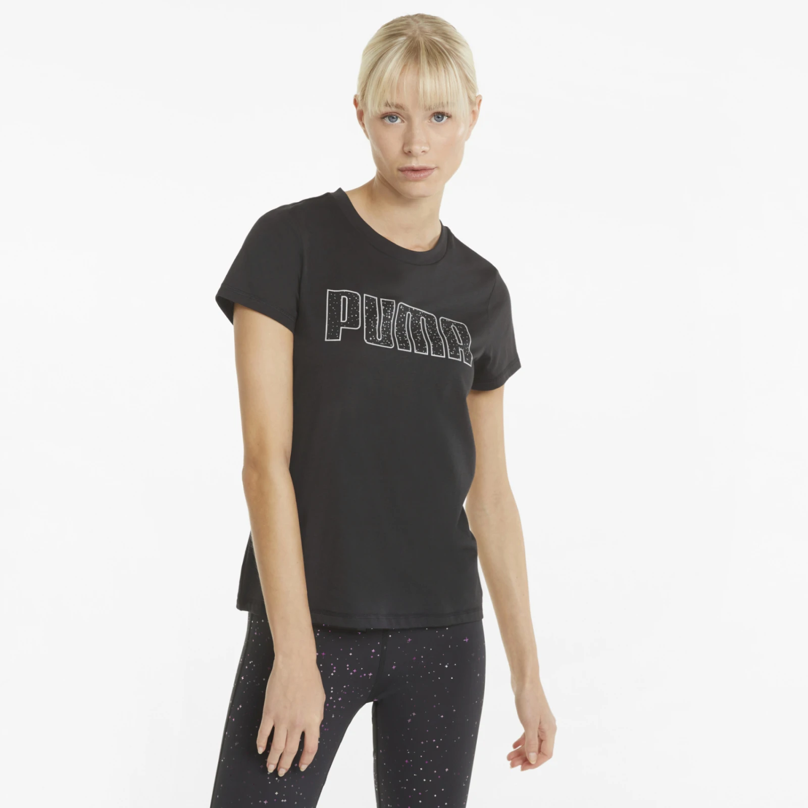 Das Damen T-Shirt Puma Stardust Crystalline Short Sleeve Tee ist aus ultraweichem Stoff gefertigt und hat einen zeitlosen Schnitt, der deinen sportlichen Look auf ein neues Niveau hebt.