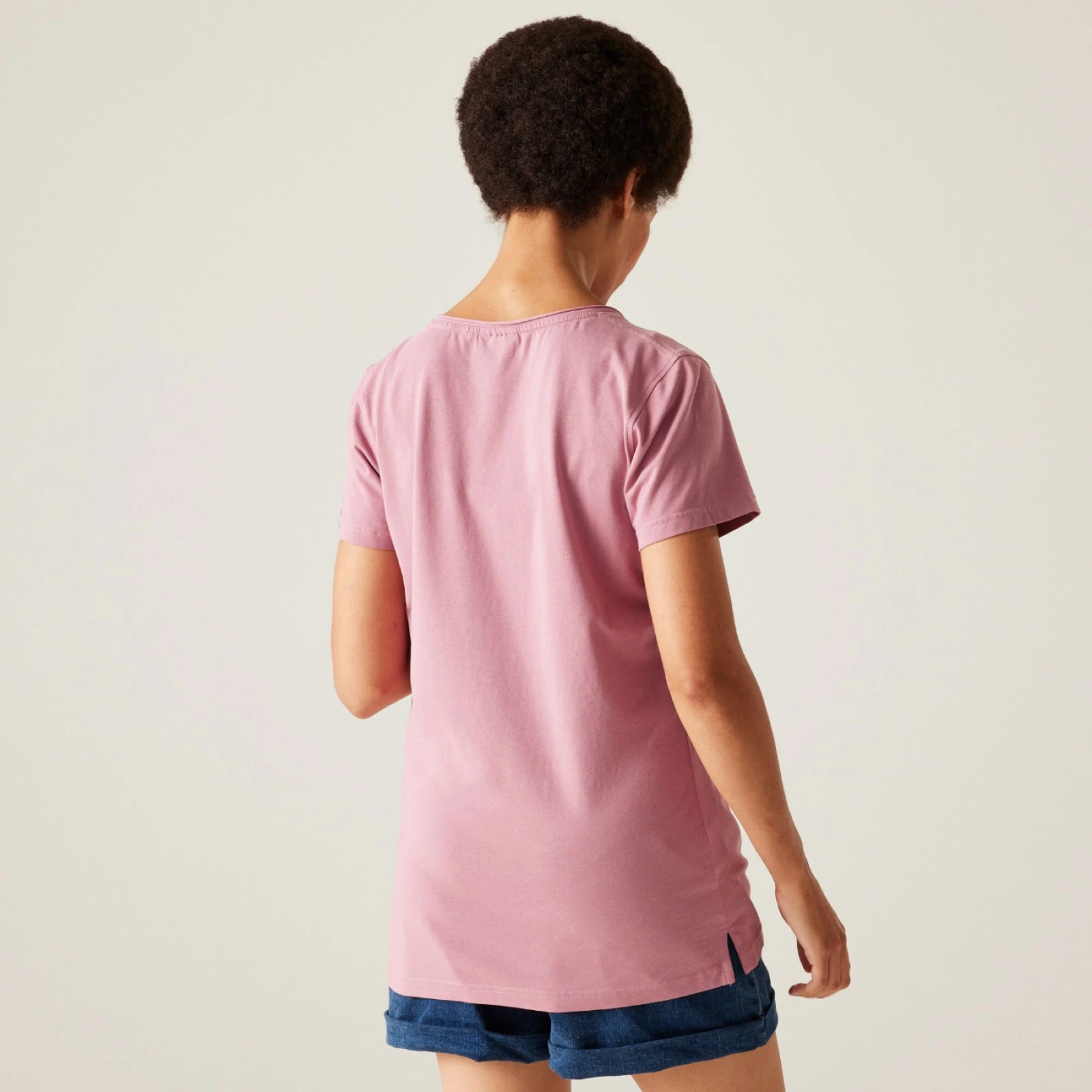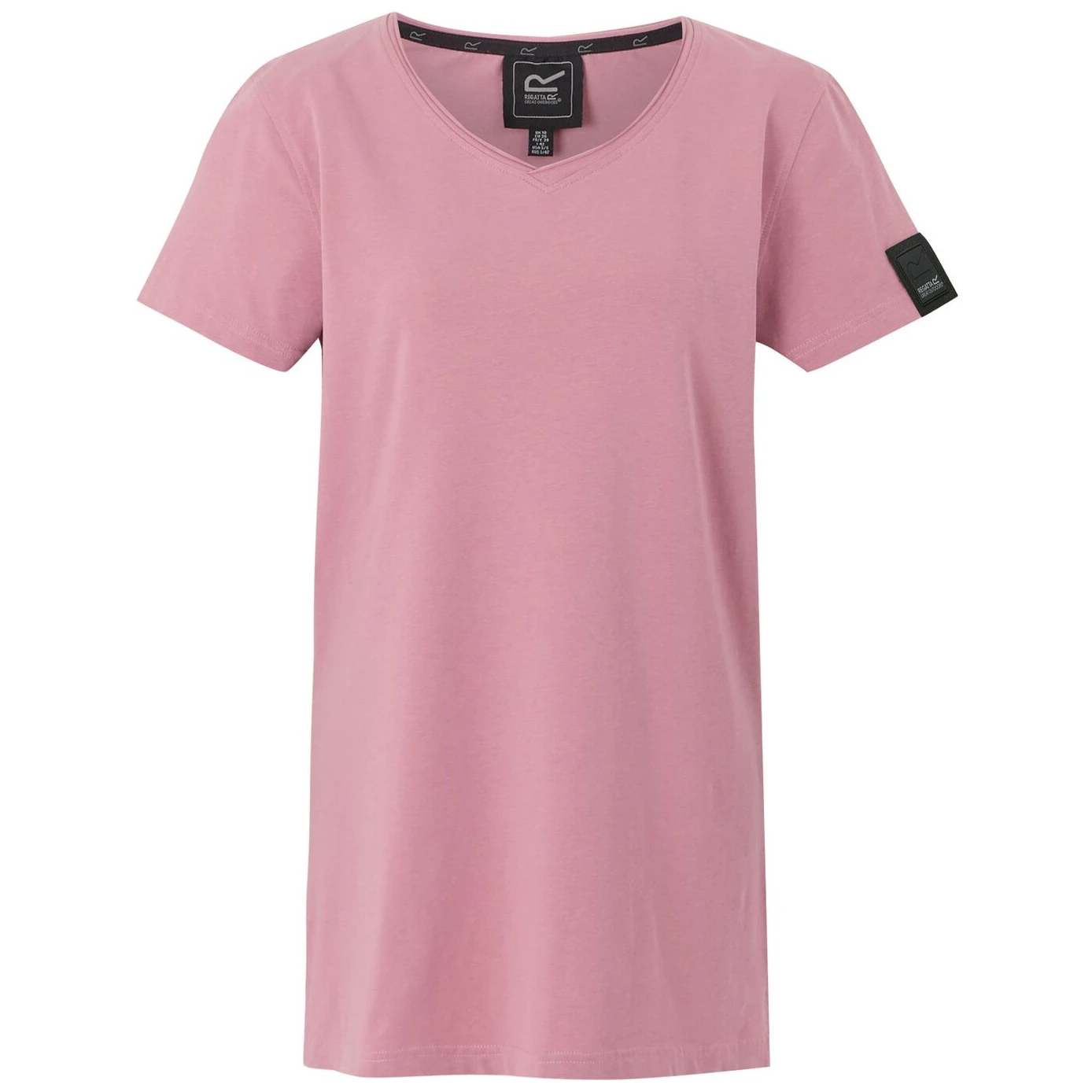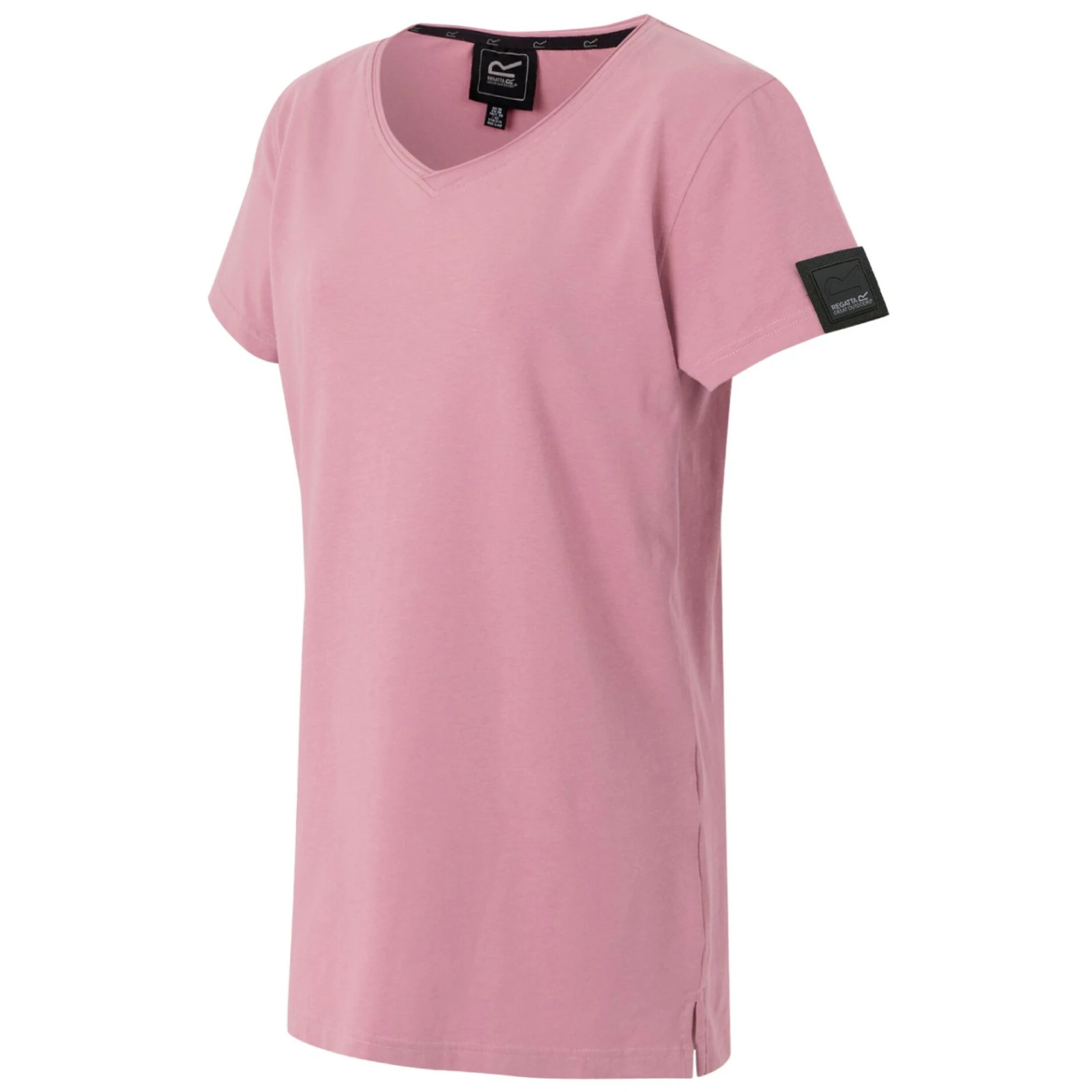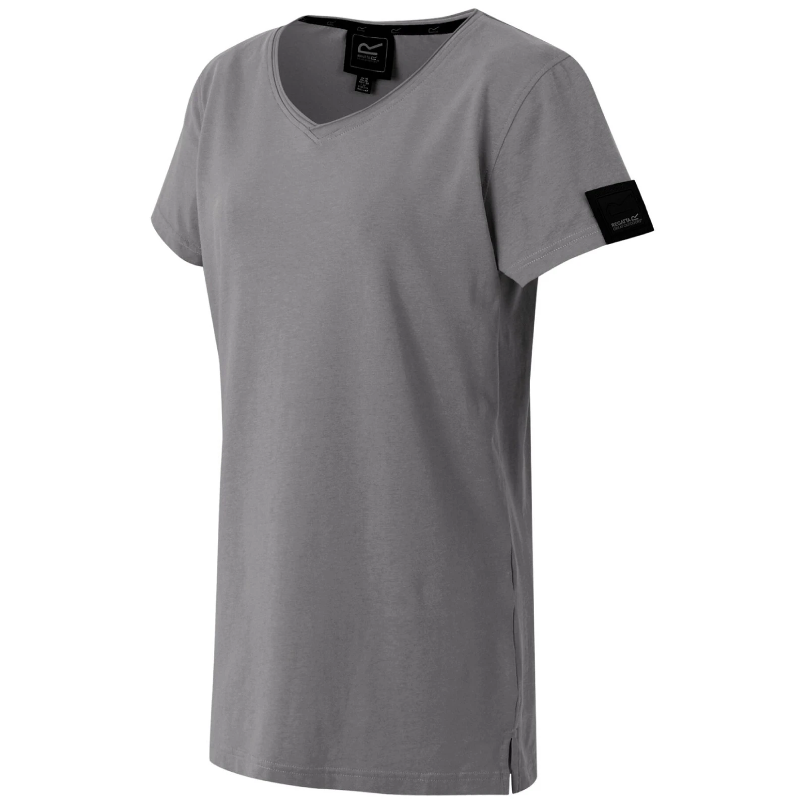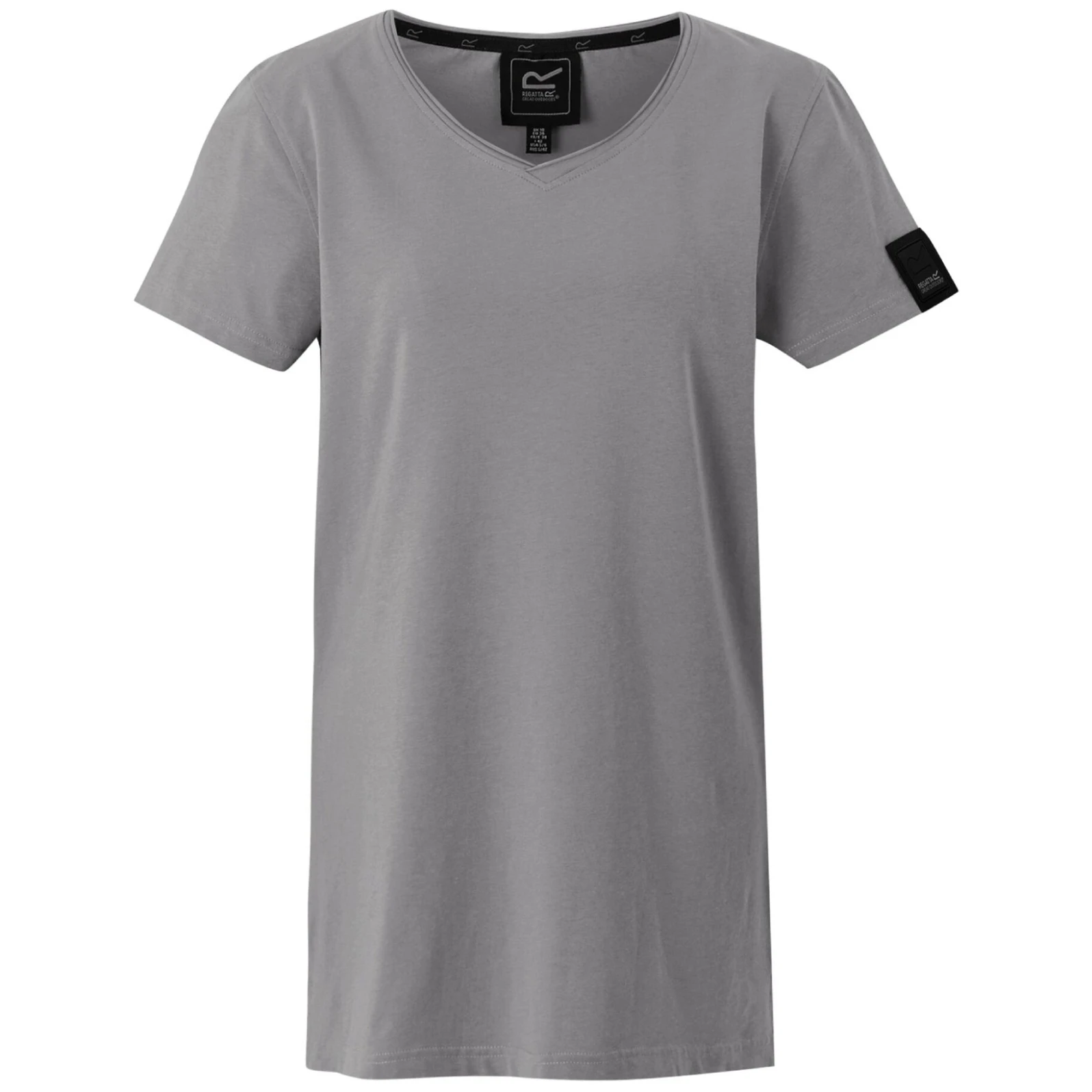 Das Damen-T-Shirt Elkie von der Marke Regatta bietet Komfort, Eleganz und UV-Schutz. Mit V-Ausschnitt und modernen Details wird es zu einem Lieblingsstück deiner Garderobe.