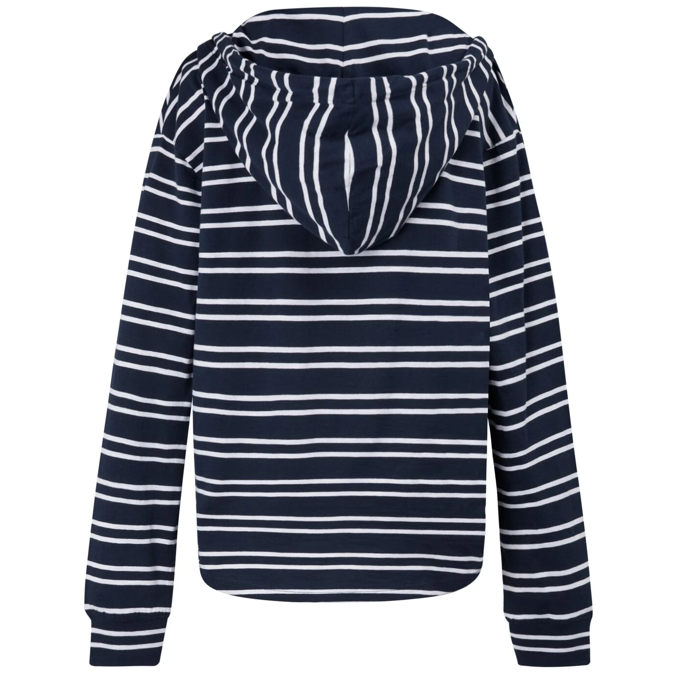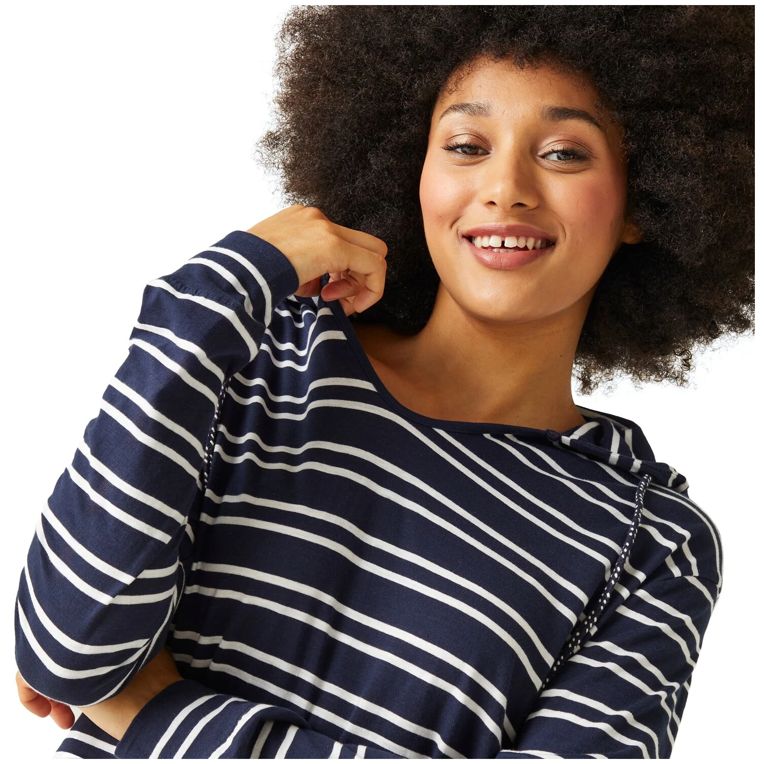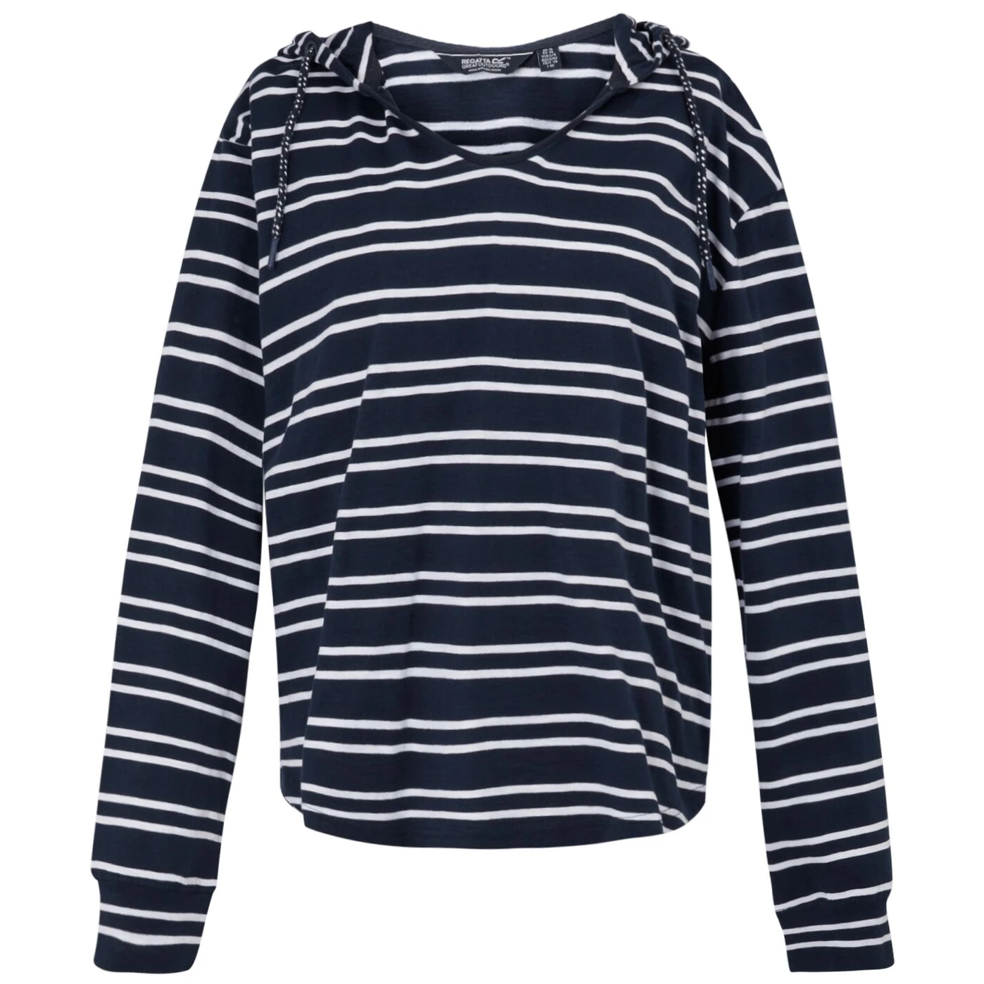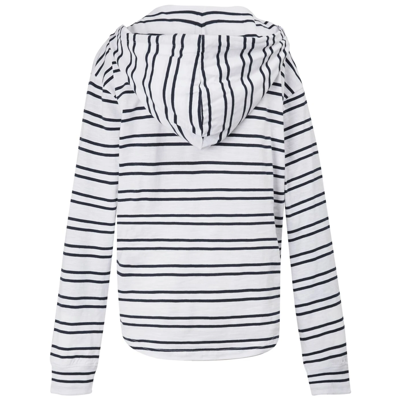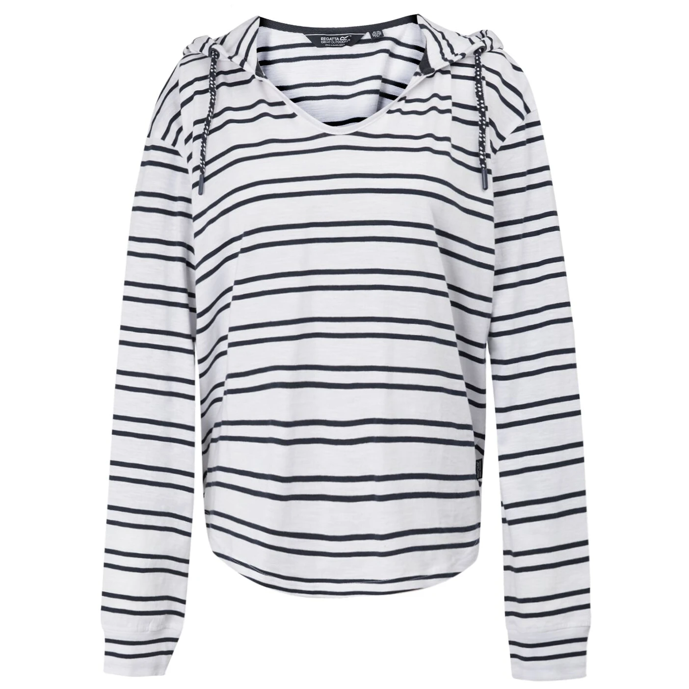 Das langärmlige Damen-T-Shirt mit Kapuze ist ideal für kühlere Sommerabende.