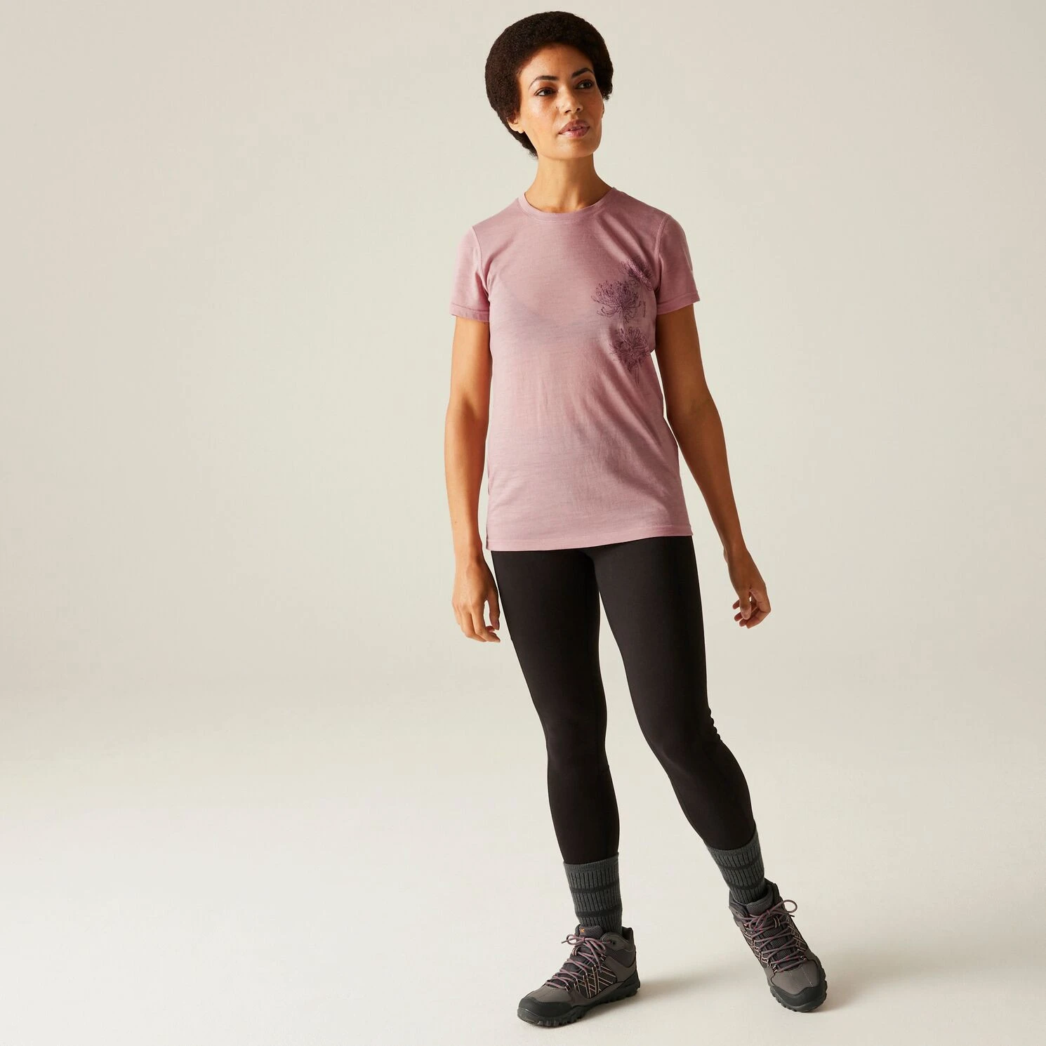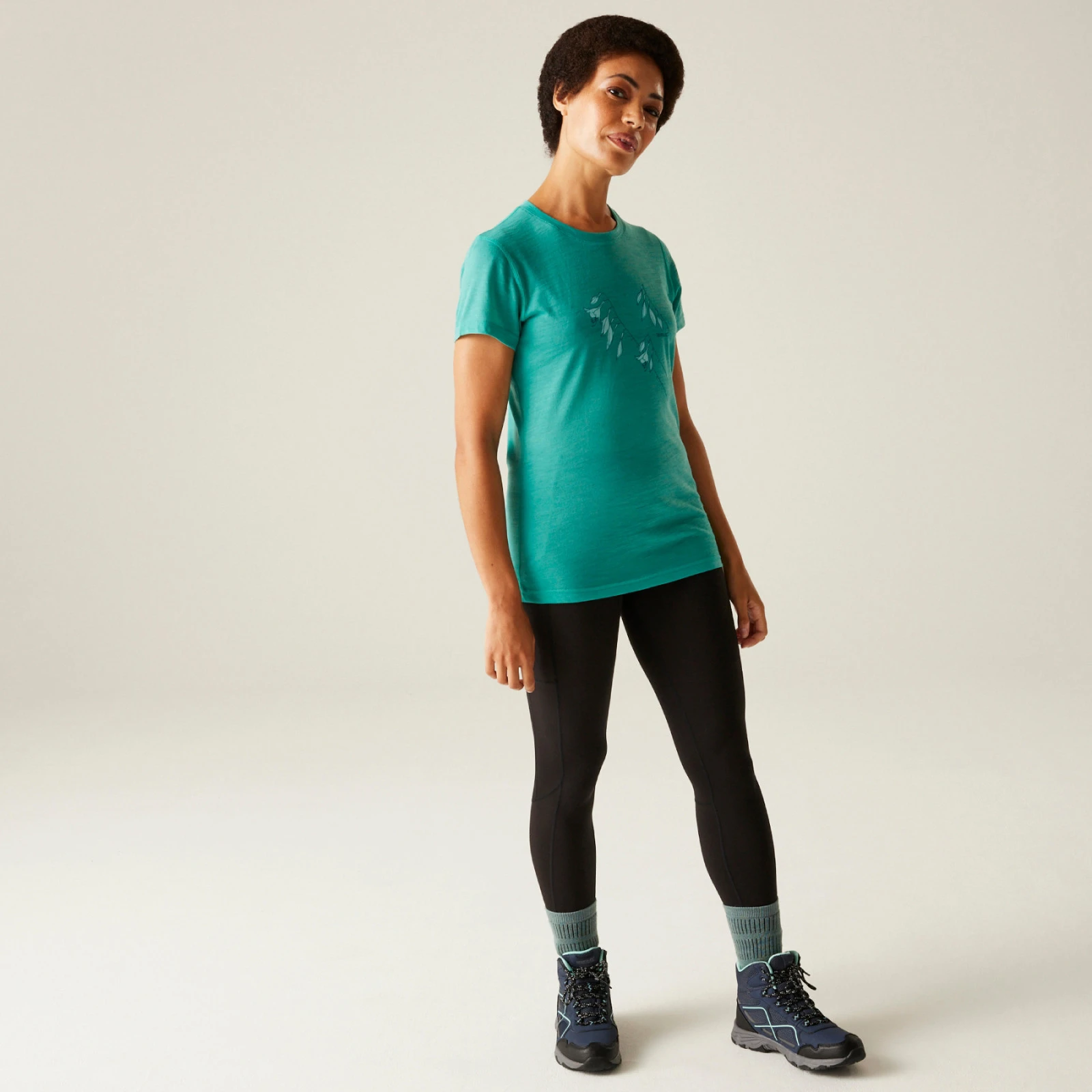 Das Damen T-Shirt W Escade von Regatta ist stilvoll, bequem und schnelltrocknend. Mit einer Kombination aus Merinowolle und Polyester ist es ideal für jeden deiner aktiven Tage.