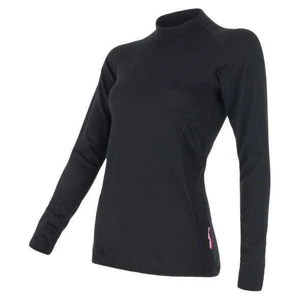 Damen T-Shirt mit Stehkragen und langen Ärmeln Sensor Double Face ist eines der vielseitigsten T-Shirts im Sortiment der Marke Sensor. Die besondere Konstruktion der Strickware und Schnittführung ermöglicht eine beidseitige Nutzung dieser Thermounterwäsche, mit stets unterschiedlichen Temperatureigenschaften. Die mit „plus“ gekennzeichnete Seite des Shirts besitzt eine Oberfläche aus Micropolyesterseide, diese Oberfläche wird als Innenseite gewählt, also „am Körper“ bei wärmeren Temperaturen. Die mit "Minus" gekennzeichnete Seite des T-Shirts besteht aus Mikropolyestergewebe und wird als Innenseite beim Einsatz bei kälteren Temperaturen gewählt. Der Unterschied im Wärmewiderstand zwischen den beiden Seiten wurde im Labor mit 3,6 °C gemessen.