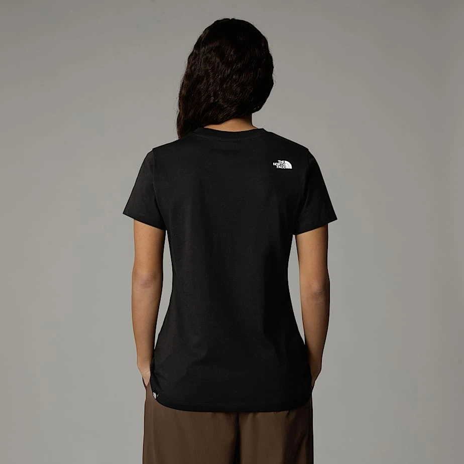 Das Damen Baumwoll T-Shirt WS/S Simple Dome Slim Tee des amerikanischen Herstellers The North Face eignet sich dank seines schlichten Designs sowohl für die Stadt als auch für das Land.