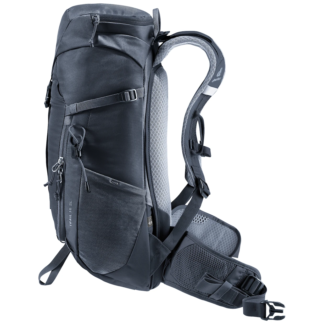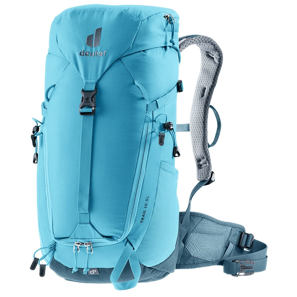 Der Wanderrucksack Trail 16 SL der Marke Deuter ist speziell für Frauen konzipiert, mit einer kürzeren Rückenlänge und einem Schnitt, der die weibliche Anatomie respektiert.