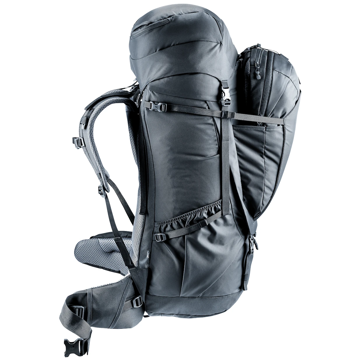 Damen-Reiserucksack Voyager 60+10 SL der Marke Deuter ist sehr funktional und für jedes Abenteuer anpassungsfähig. Es ist im Damenschnittgefertigt, das heißt mit kürzerer Rückenpartie, schmaleren Schultern und einer an die weibliche Anatomie angepassten Schnittführung.